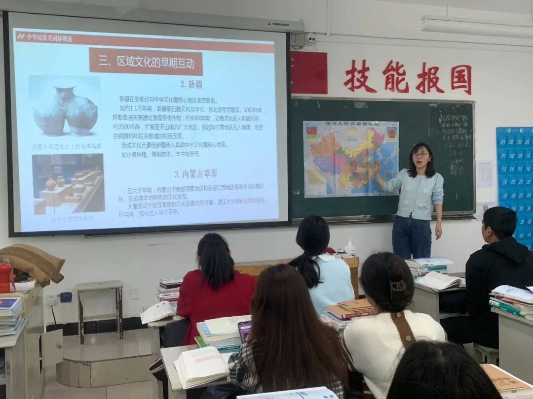 翻开刘利娜的教案,就像打开了一个充满爱的百宝箱。在《中华民族共同体概论》教案中,她不仅系统梳理了各民族交往交流交融的历史脉络,更精心穿插了新疆本地的鲜活案例:从坎儿井里流淌的各族人民协作智慧,到现代产业园里各民族职工共筑的致富梦。每一页都贴着她手写的批注,“这里可以加入学生家乡的变化”“这个故事适合分组讨论”,字里行间满是对学情的精准把握。这份教案,早已超越了教学工具的意义,成为连接知识与心灵、个体与民族的温情纽带。