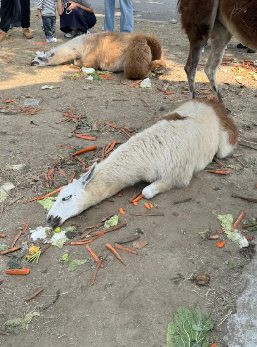 从网友拍的图片看,几只羊驼因游客过量投喂而瘫倒在地、眼神呆滞。它们的痛苦,恰似对人类“爱心”最沉默的控诉。“吃饱了就不张嘴”——多少动物正是因为这句看似轻松的话,一步步走向悲剧。上海动物园的红猩猩“森泰”因长期被投喂患上“三高”离世;西安秦岭的金丝猴因恶意投喂永远闭上了眼睛……