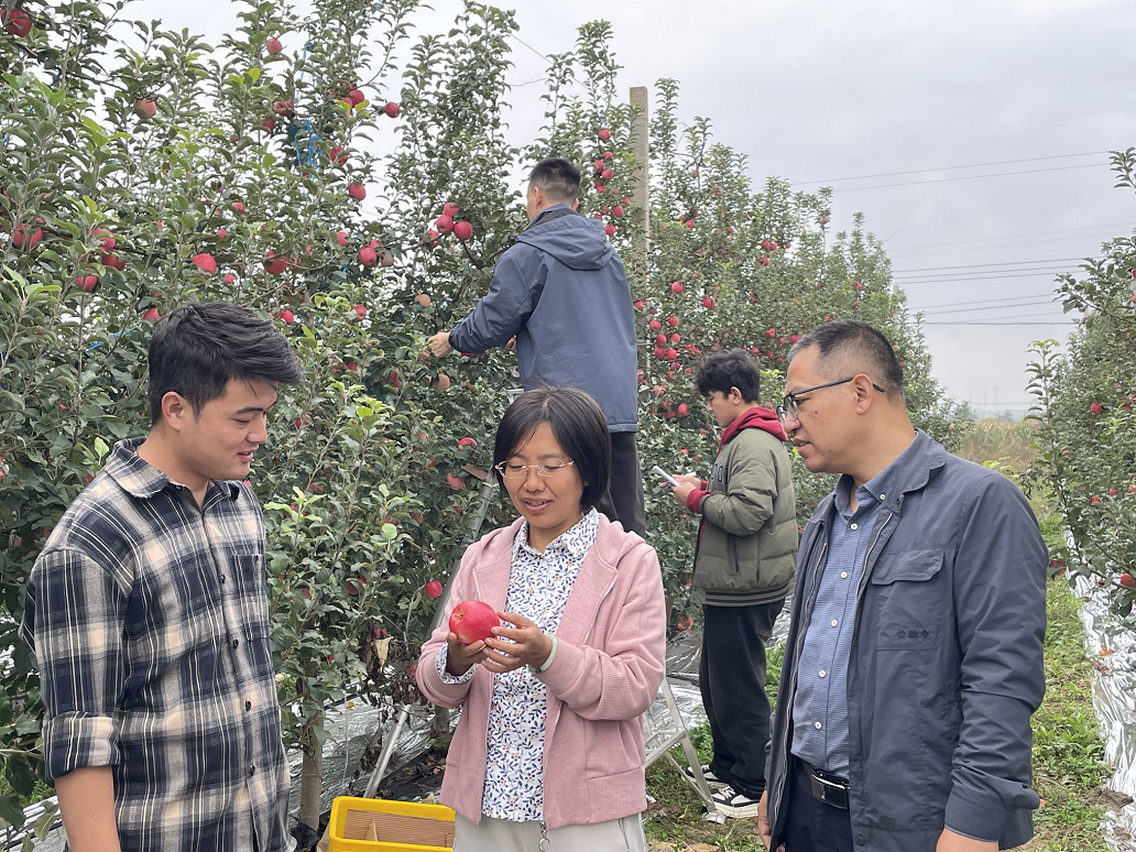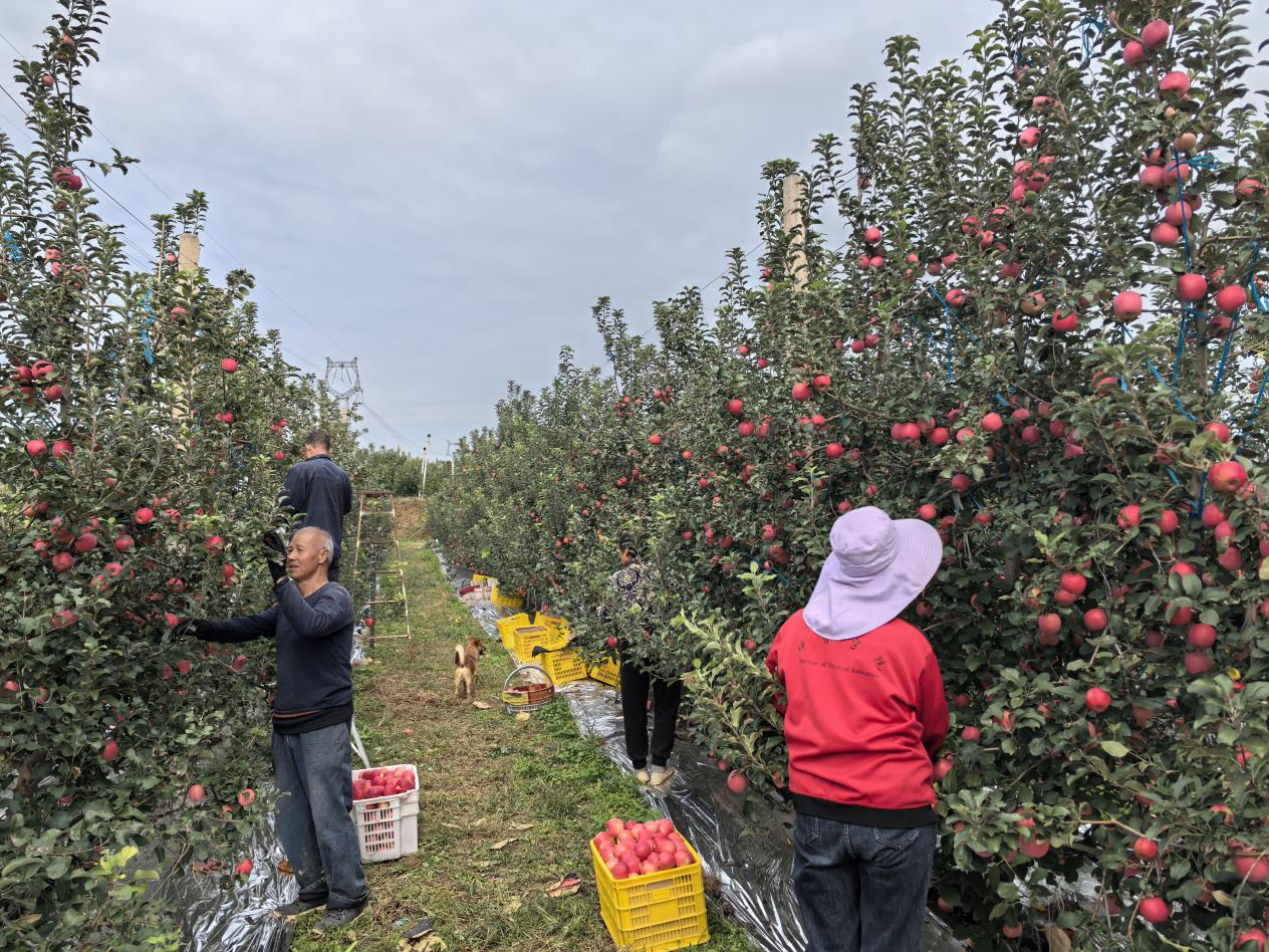 10月13日雨水停歇后,山西农业大学园艺学院师生与合作社负责人王广毅一道,抓紧开展苹果采收工作。师生团队通过室内淀粉染色、外观色泽检测、可溶性固形物分析及口感品尝,确定不同品种苹果的采收时间节点。