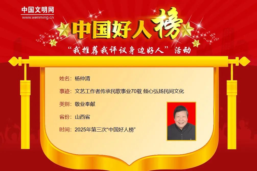 10月15日,2025年第三次“中国好人榜”发布仪式暨全国道德模范与身边好人现场交流活动在新疆维吾尔自治区阿克苏地区阿克苏市举办。山西杨仲清光荣上榜!