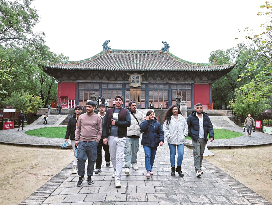 “除了享誉世界的壁画,永乐宫飞檐翘角的古建筑本身也极具价值。”来自印度尼西亚的叶招升(Veldesen Yaputra)分享道,“走进这里,内心会不自觉地安静下来。珍贵的元代官式建筑结构、三清殿上那对孔雀蓝琉璃鸱吻……每一处细节都值得驻足细品。”