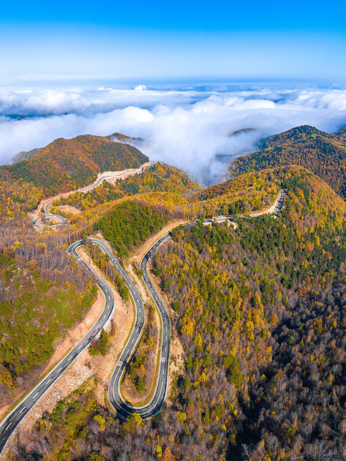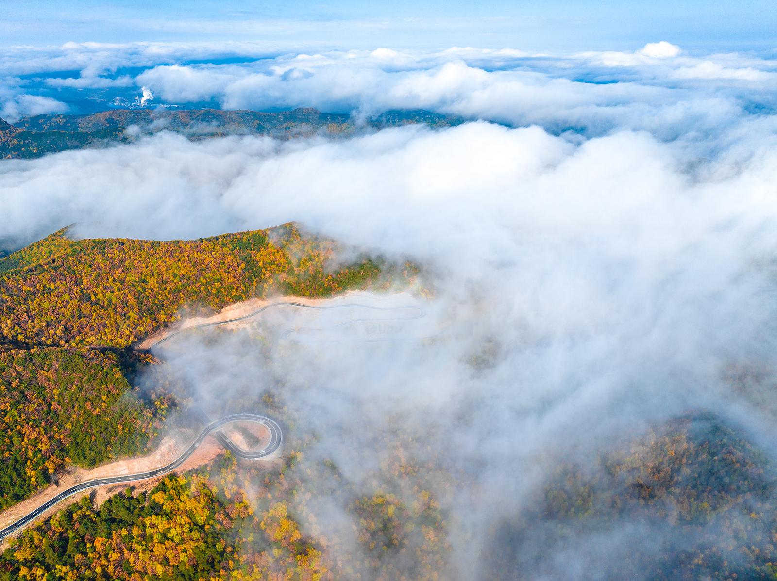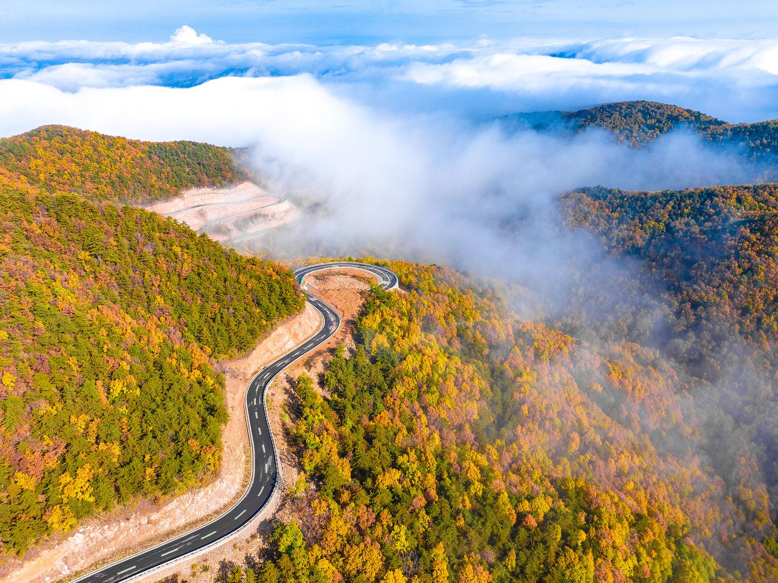 10月18日,山西省晋中市左权县太行龙泉旅游区呈现出一幅壮丽的自然画卷。磅礴的云海漫过层林尽染的群山,与斑斓秋色交织融合,构成令人心醉神迷的视觉盛宴。