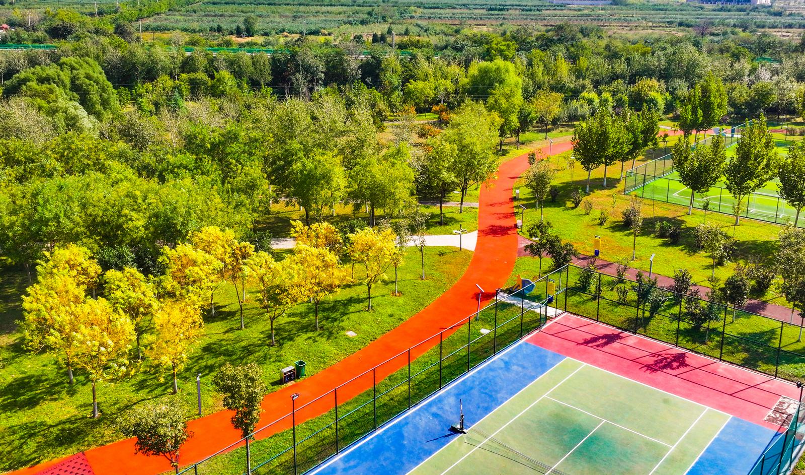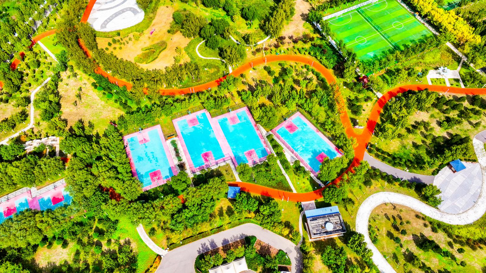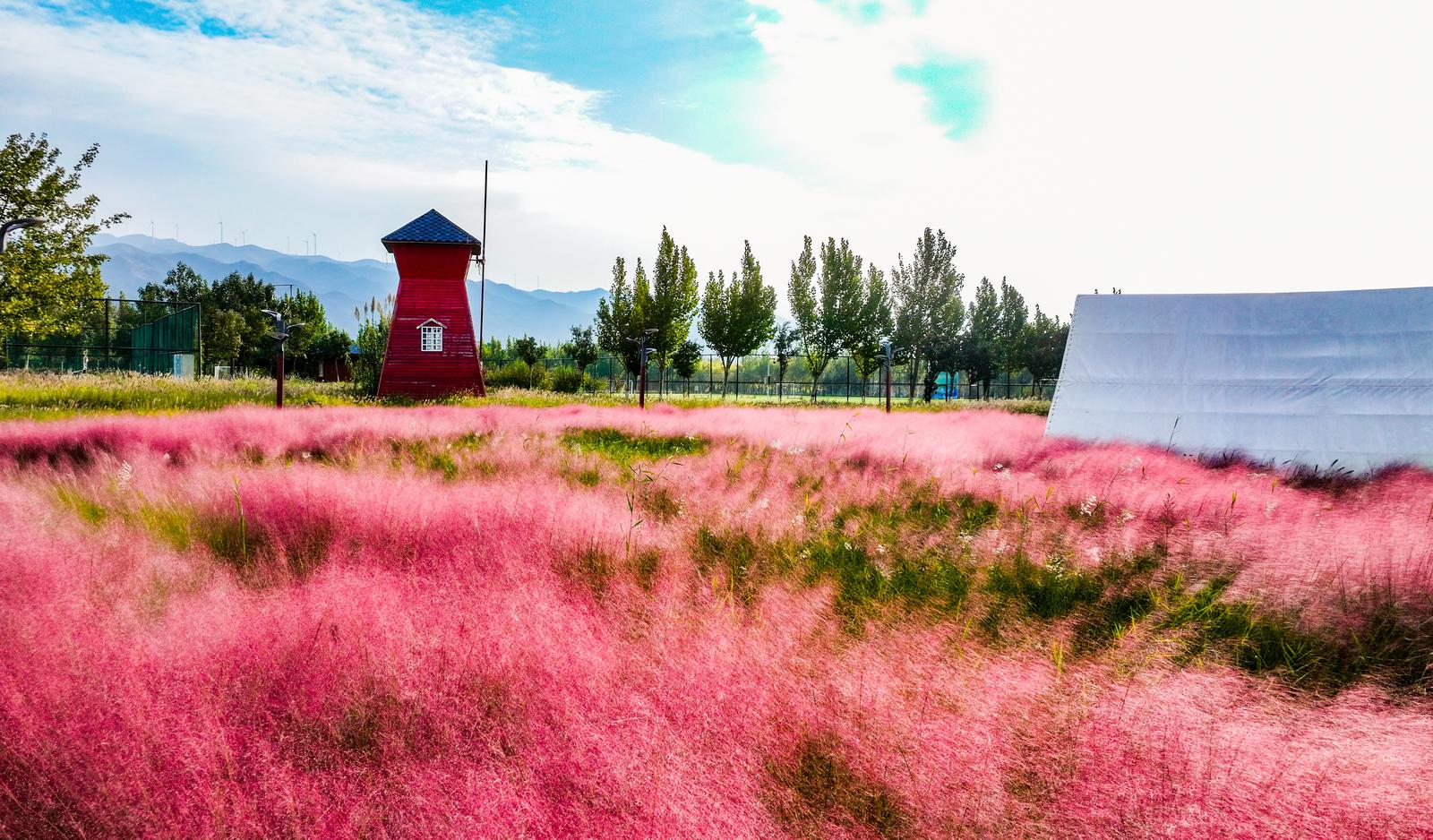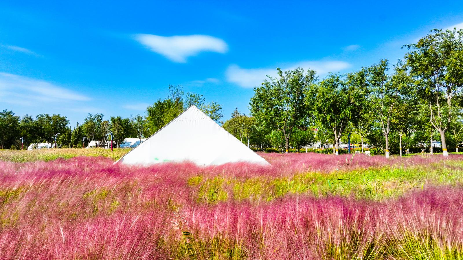 10月21日,运城市运动公园内,杨树遍染金黄、松柏依旧翠绿,粉黛草似云霞铺展,秋景雅致和谐,尽显秋日生机。