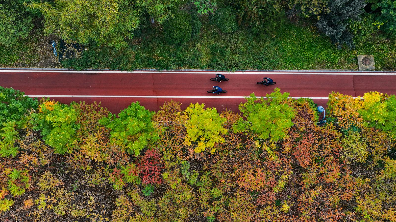 深秋时节,太原滨河自行车道层林尽染,沿岸红枫与汾河碧水相映成趣,构成绝美秋日画卷。清晨至午后,骑行爱好者、亲子家庭、外地游客络绎不绝,大家或竞速驰骋,或悠然观景,尽享秋日美好。