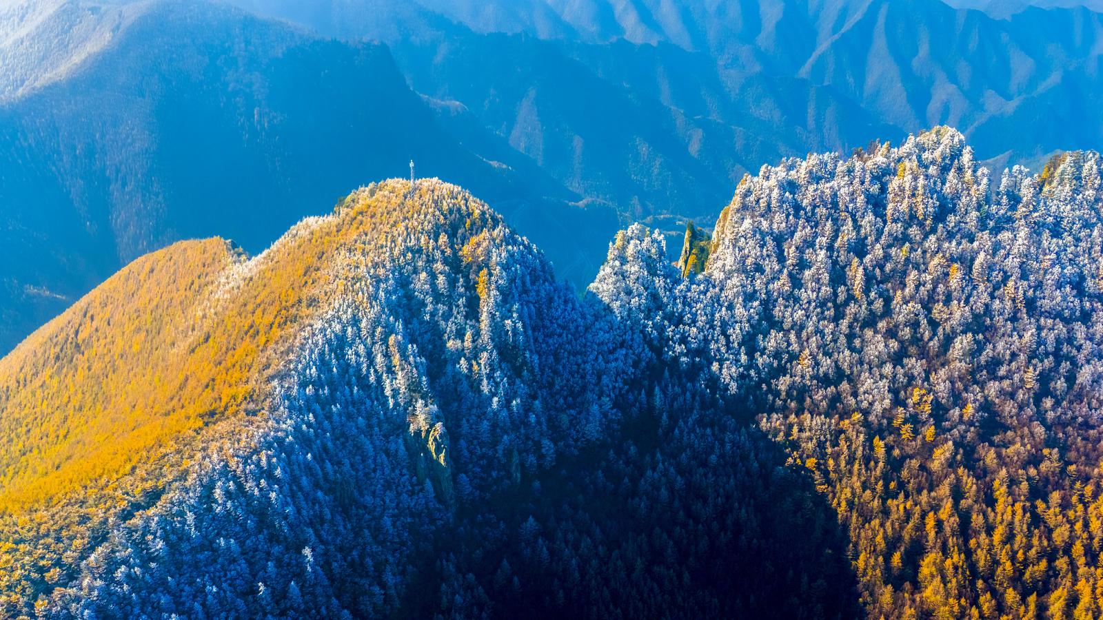 10月26日,受强冷空气影响,山西省霍州市七里峪景区五龙壑海拔较高区域出现了难得一见的雾凇奇观。漫山遍野的树木被冰晶包裹,晶莹剔透,玉树琼枝,与尚未褪尽的斑斓秋色交相辉映,构成了一幅“秋与冬”的梦幻画卷,吸引了众多摄影爱好者和游客前来观赏。