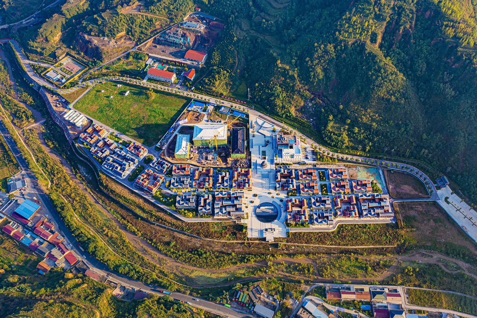 10月27日,山西省临汾市乡宁县紫砂小镇秋意正浓。建筑、绿植、步道、亭阁、景观、古建等错落有致,交相辉映,构成一幅绚丽多彩的生态画卷。