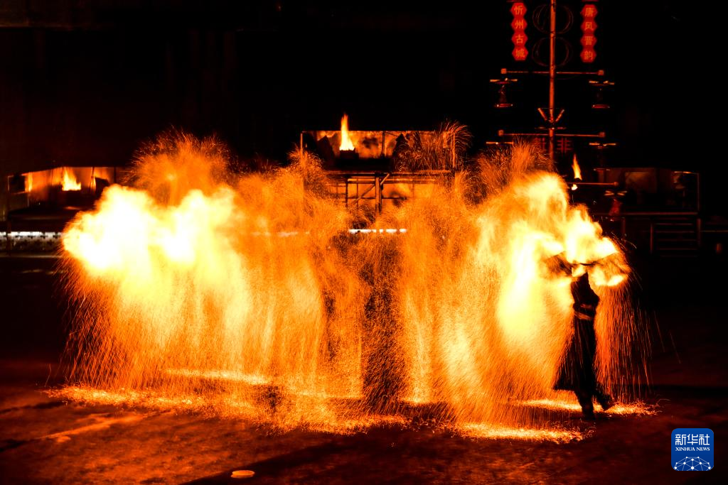 这是10月23日拍摄的忻州古城内的“火壶”表演。