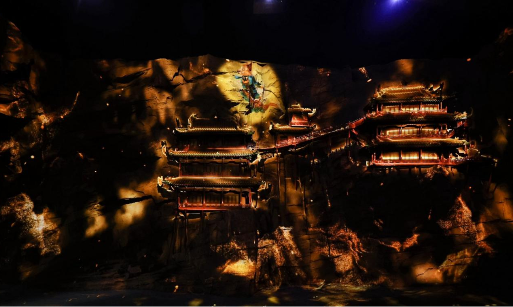 「黑神话:悟空」遇见山西——古建数字艺术展中光影下的悬空寺。新华网 发