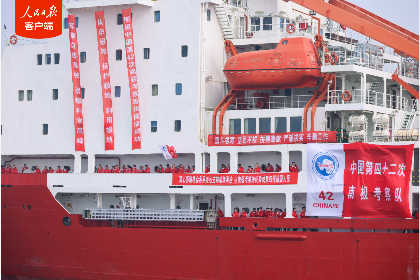 11月1日,由自然资源部组织的中国第42次南极考察队出征,奔赴南极。此次考察由“雪龙”号和“雪龙2”号两船共同保障,共有来自国内80余家单位的500余名队员参加,并邀请来自泰国、智利、葡萄牙和中国香港、中国澳门等十余个国家和地区的科研人员共同参与,预计于2026年5月完成任务后返回国内。