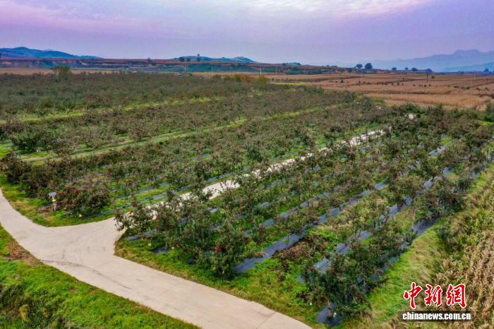 红彤彤的苹果如霞似火,为昔日荒山披上“红妆”。王晨 摄