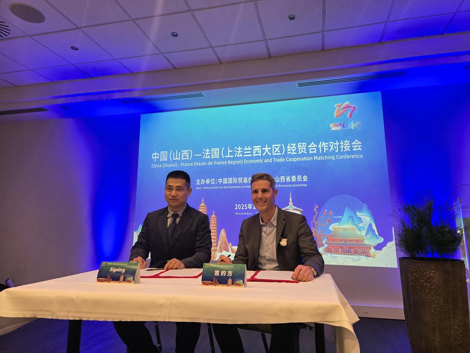 当地时间11月4日,由中国国际贸易促进委员会山西省委员会主办的“中国(山西)—法国(上法兰西大区)经贸合作对接会”在法国上法兰西大区举行。此次活动作为"2025年山西品牌丝路行(奥法站)"的重要一站,旨在搭建山西与法国地方经贸交流的高端平台,推动双方在能源、新能源汽车、葡萄酒、绿色技术、文旅产业等领域深化务实合作。