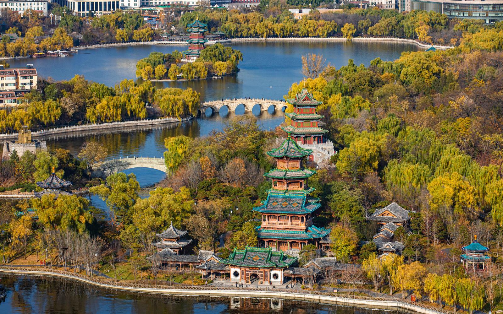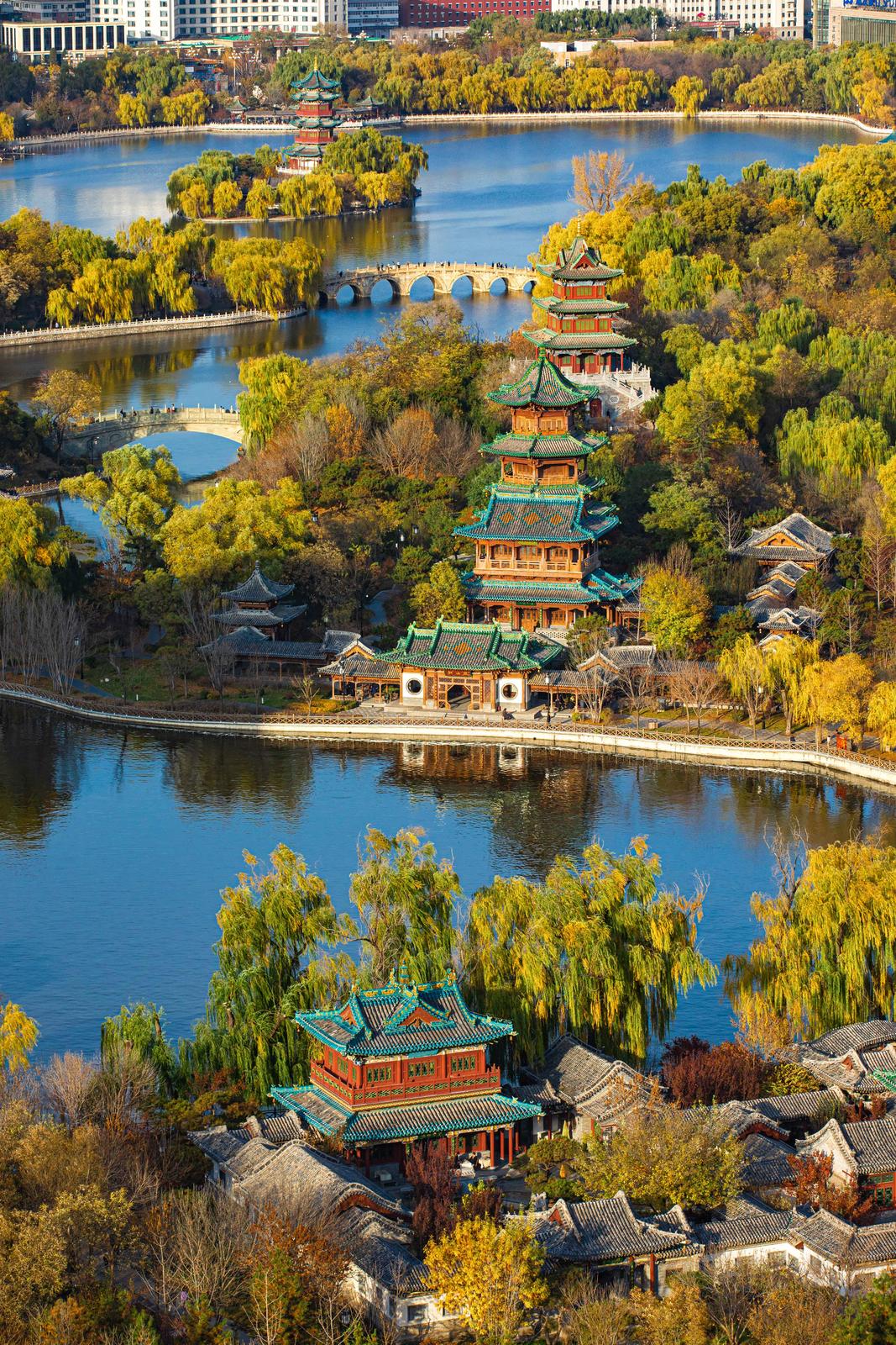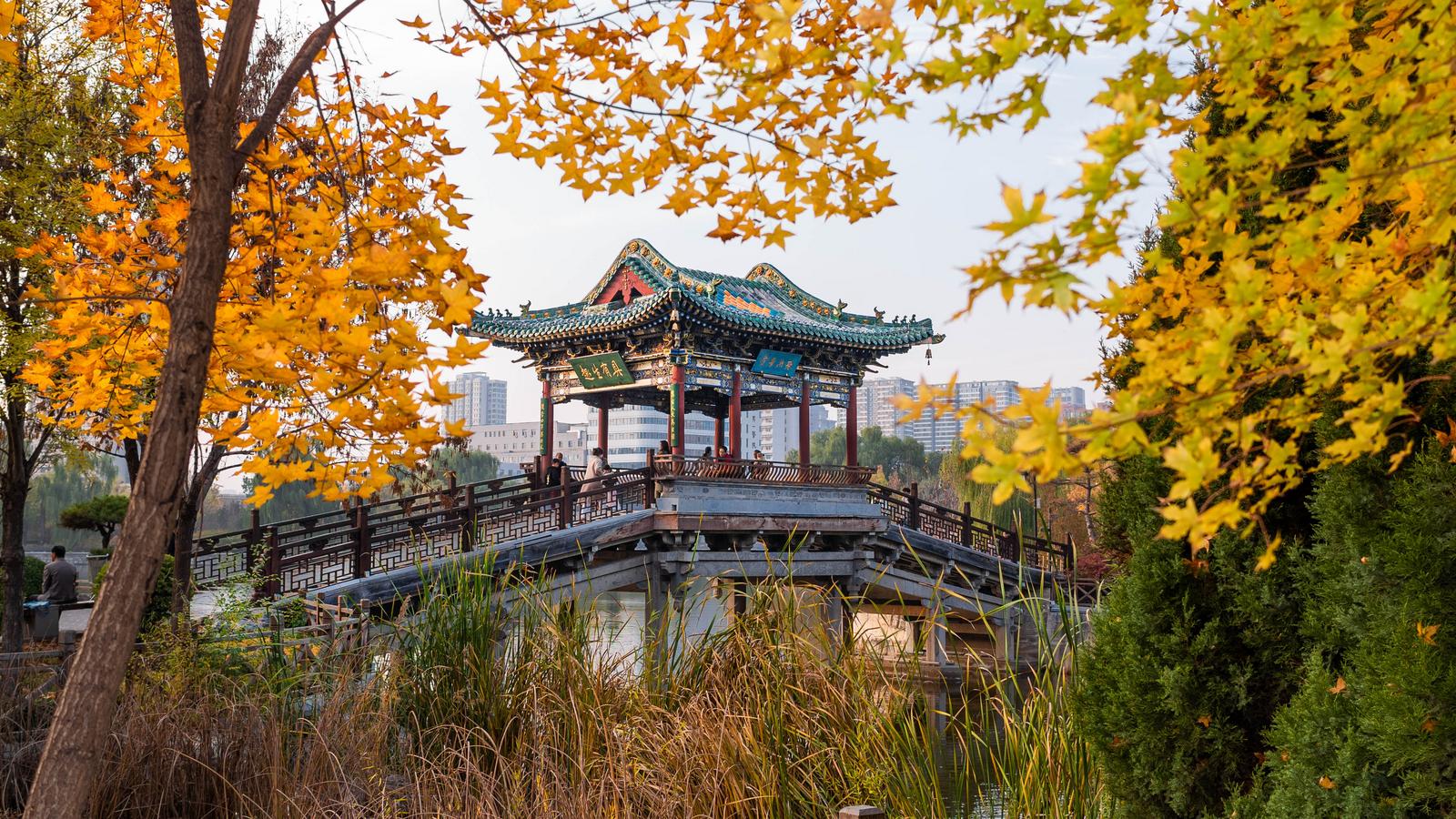 初冬时节,太原市迎泽公园仿佛一幅被时光浸染的鎏金画卷。园内银杏金黄、枫叶似火、松柏凝翠,景色如诗如画,尽显初冬绚烂景致。