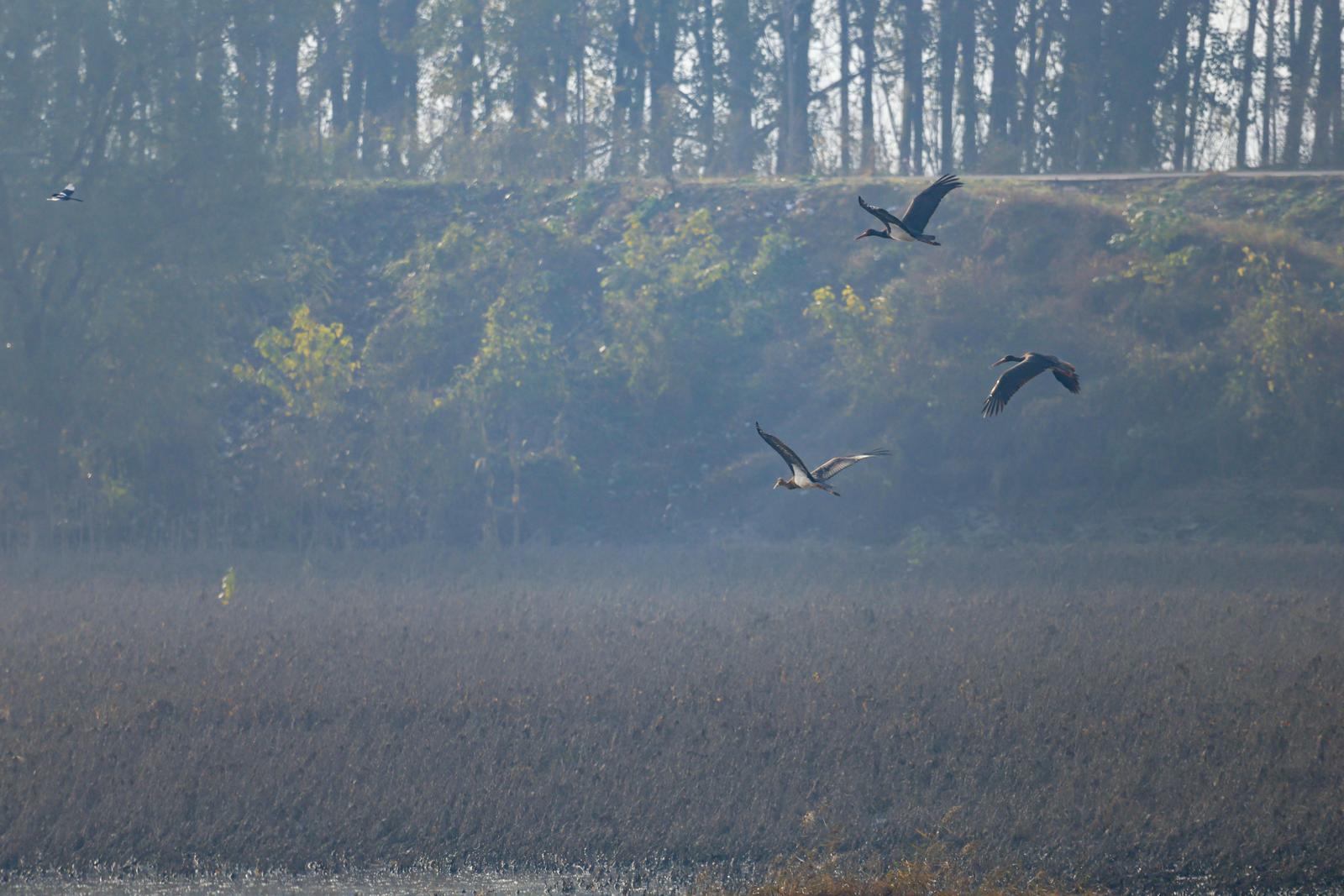 近日,汾河河津段迎来大批候鸟栖息过冬,它们或在空中翱翔,或在水面嬉戏,灵动自在,为初冬的汾河增添了一抹生机亮色。