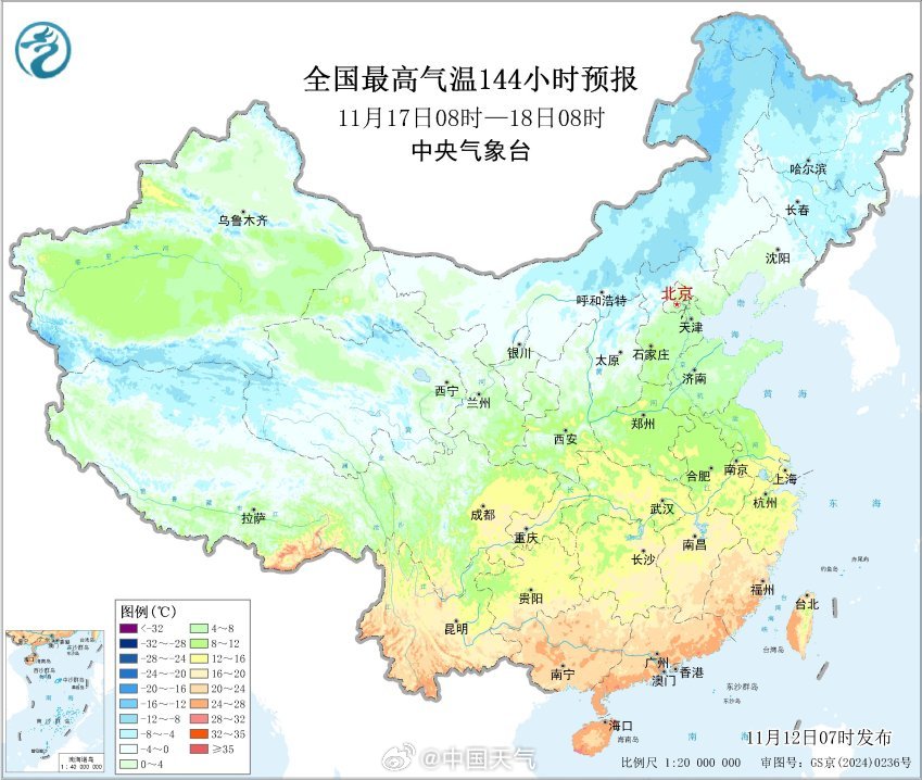 黄淮地区气温骤降和过程最低点出现在下周一,南方也会从下周一开始明显降温,南京、武汉、上海、贵阳周日最高气温还都在20℃以上,下周一大幅下跌,下周二最高气温普遍不足10℃,福州会从27℃降到16℃,各地冷暖变换剧烈,注意及时调整穿着。