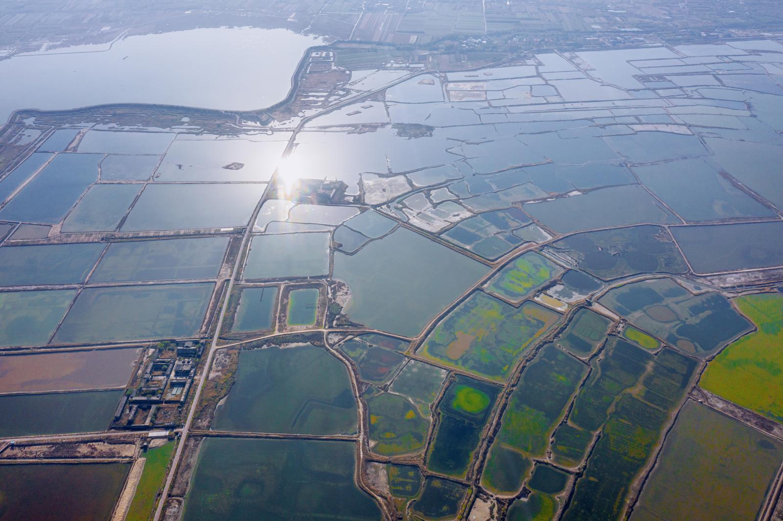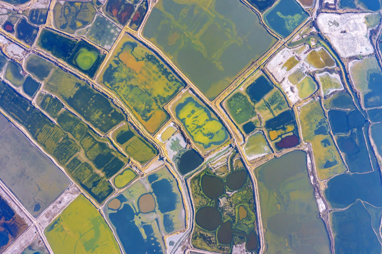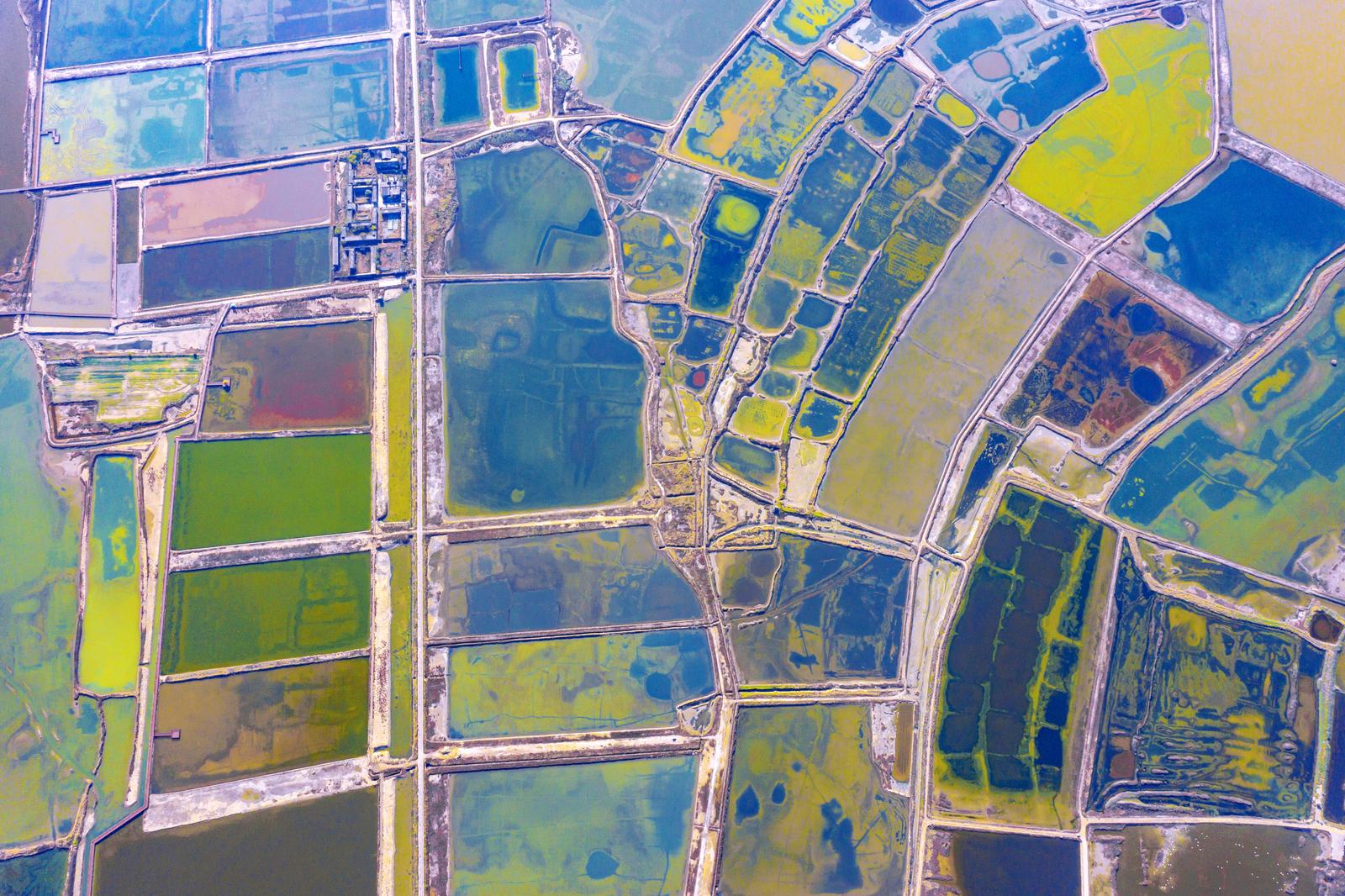 初冬的运城盐湖色彩斑斓,美不胜收。从高空俯瞰,湖内盐田纵横交错,星罗棋布,像是七彩“调色盘”。