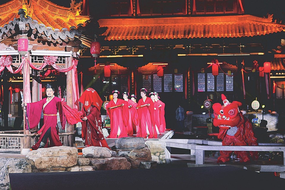 演出现场全实景搭建,亭台楼阁、古街巷道复刻到位,使游客仿佛置身于那个战火纷飞、英雄辈出的时代。烟机营造的朦胧意境,火机道具烘托的紧张氛围,加之灯光音效的交织融合,将沉浸感推向极致。