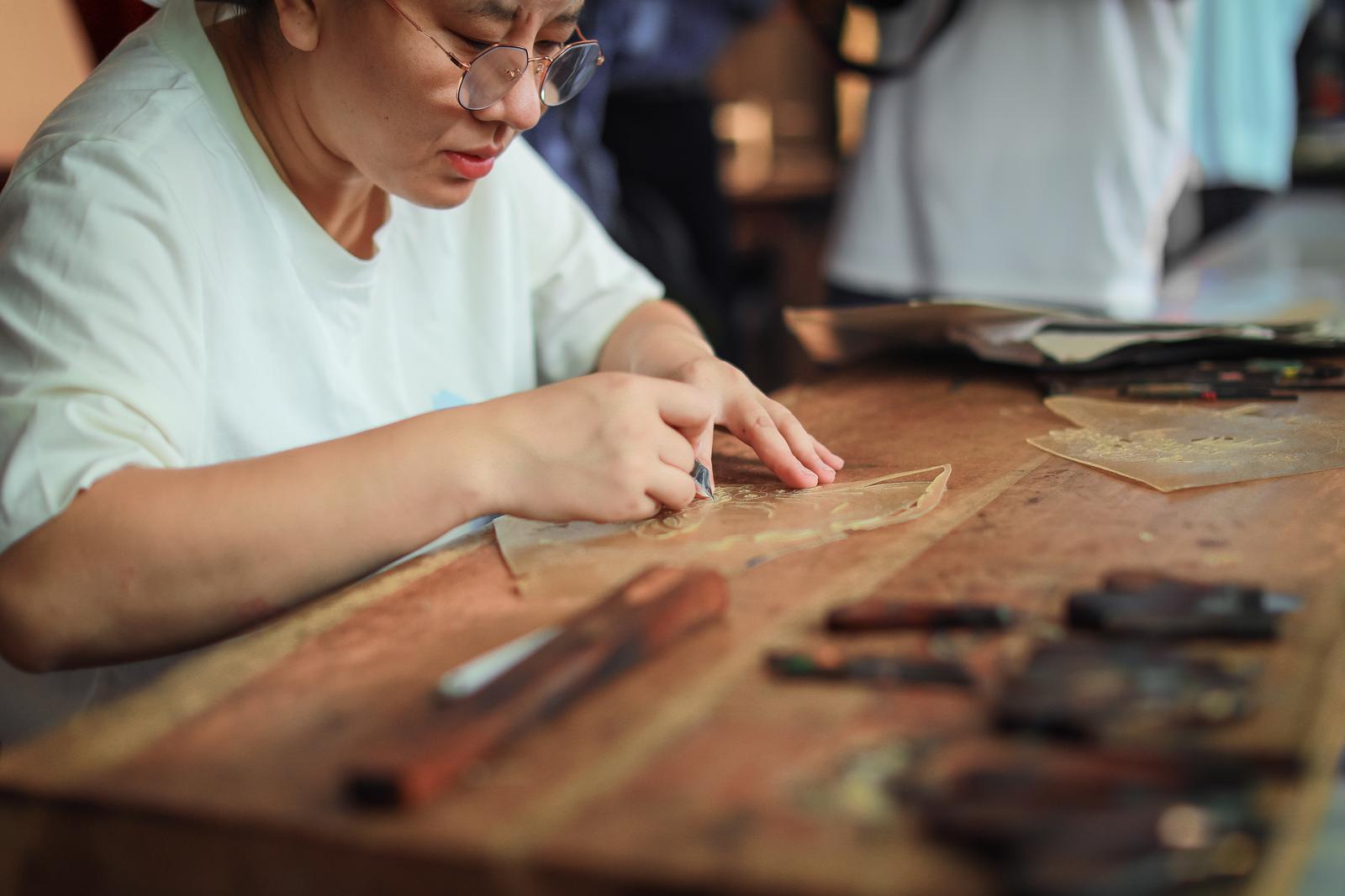 在幕布后,省级非物质文化遗产项目侯马皮影戏代表性传承人赵翠莲老师,用精湛的技艺展现皮影艺术的魅力。