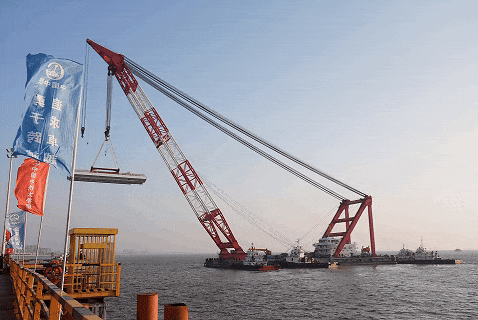 11月15日上午8时38分,晨光洒在蔚蓝的海面上,距嘉兴海盐岸线约0.4公里的杭州湾海域,重达626吨的钢梁在“盈尚1”浮吊船的精准操控下,缓缓嵌入8号主墩墩顶。这座正在生长的超级工程,迎来了具有里程碑意义的时刻——通甬高铁控制性工程杭州湾跨海铁路桥北航道桥正式启动钢梁架设。