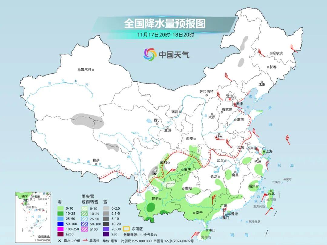 总体来看,这次寒潮过程带来的雨雪天气不多。今天,北方的雨雪将基本结束,南方雨雪南压,多以弱阴雨天气为主。