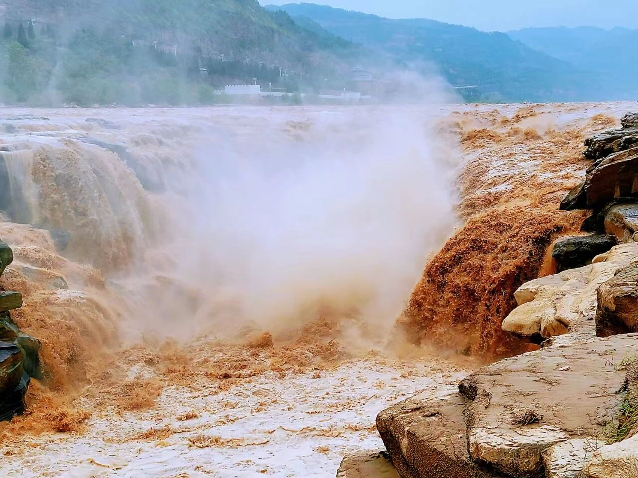 李白“黄河之水天上来”的磅礴,在此刻有了最真切的注解。宽500米的河面骤缩至20余米,浊浪如千军万马坠入30米深石槽,水雾冲天凝成彩虹,轰鸣震得地面微颤——壶口是黄河的“心脏”,每一次浪涛撞击,都带着中华民族的脉搏。