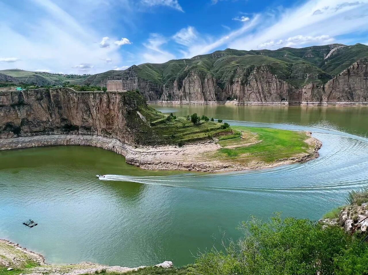 汽车沿盘山公路而上,当老牛湾轮廓出现时,全车人惊叹——黄河在此挥毫,画出一个近乎完美的圆形大湾,被誉为“太极湾”,灰白色石头房依山而建,爬山虎爬满墙面,与黄的河、绿的山、蓝的天构成画卷。不远处的河曲县榆岭窊村,曾是水土流失重灾区,如今鱼鳞坑存水,油松、侧柏满山,村民张老汉每天巡河捡垃圾:“家门口的河段自己护,还能领补贴!”