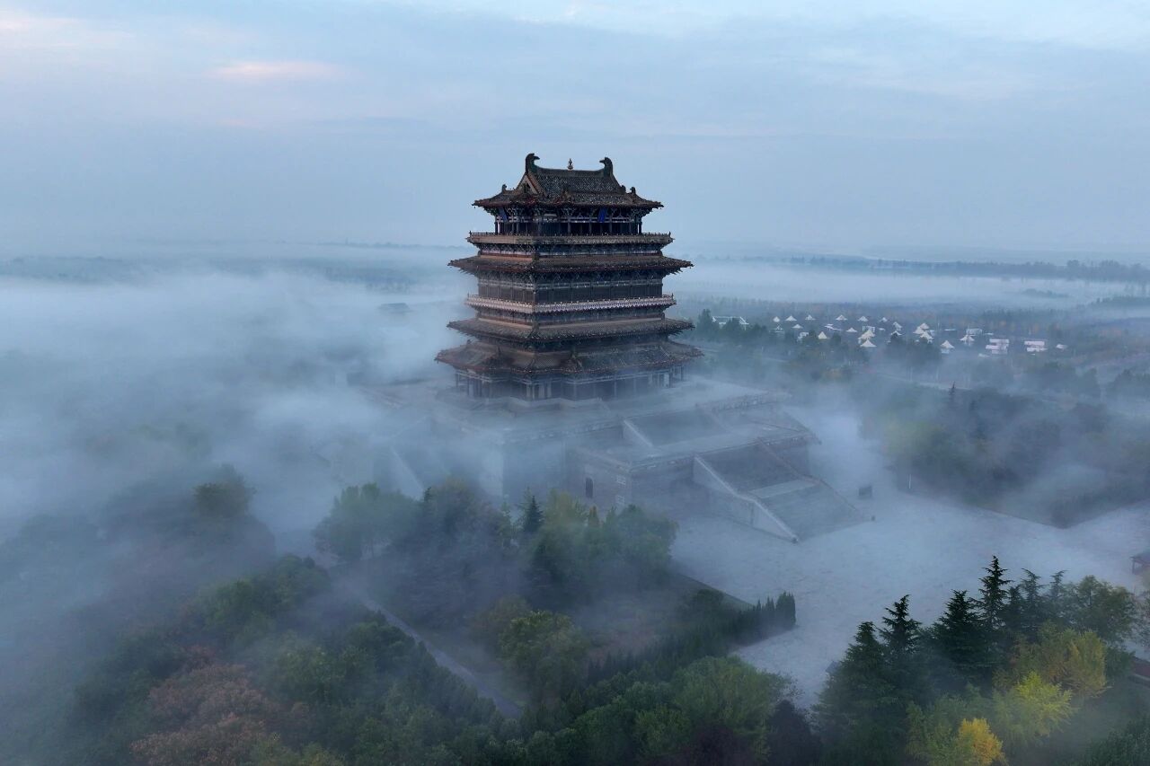 2023年10月26日在山西省永济市拍摄的鹳雀楼(无人机照片)。新华社发(陈春明 摄)