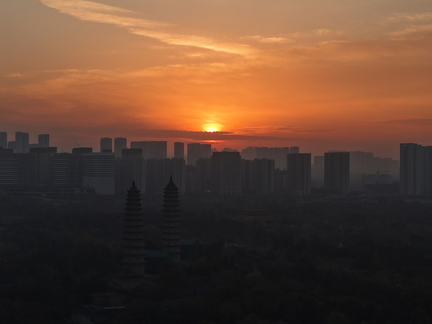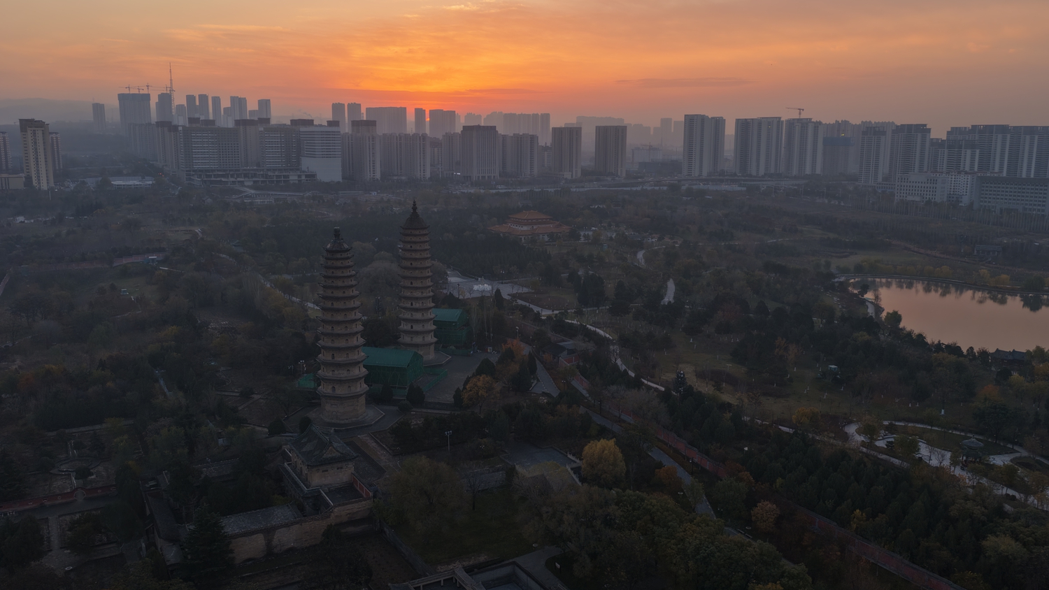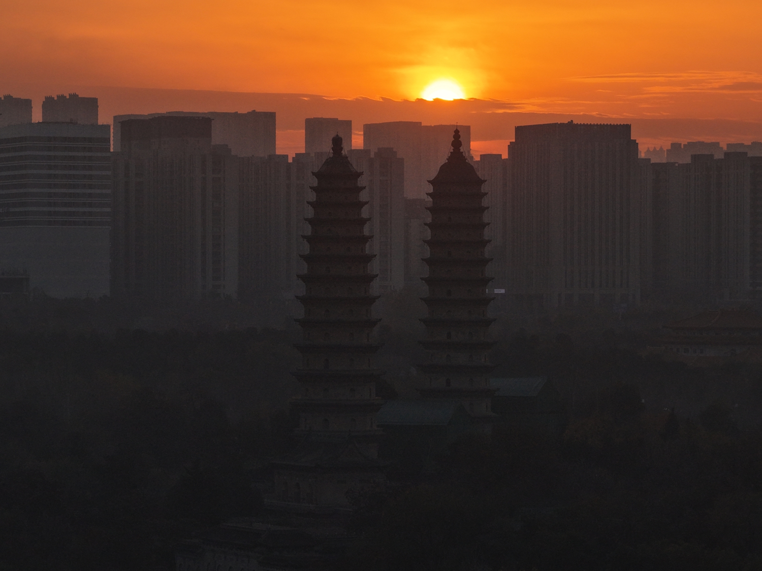第一缕霞光里,太原双塔藏着最美日出