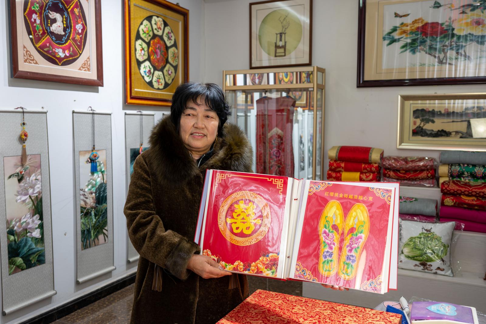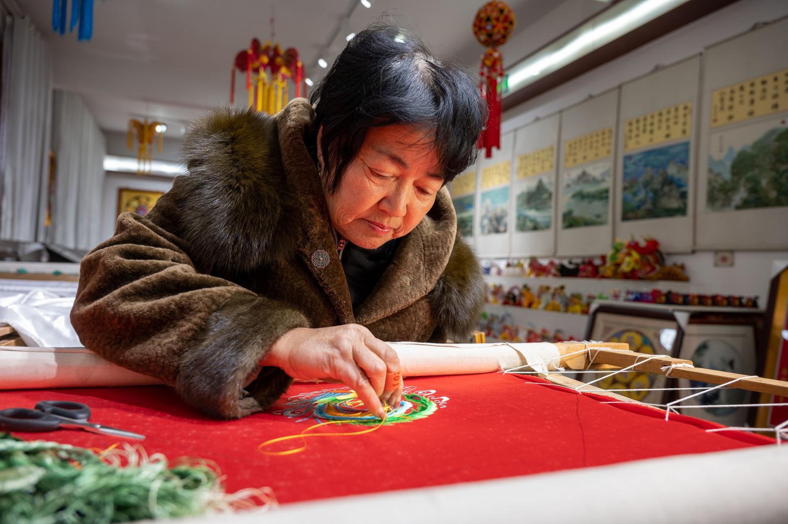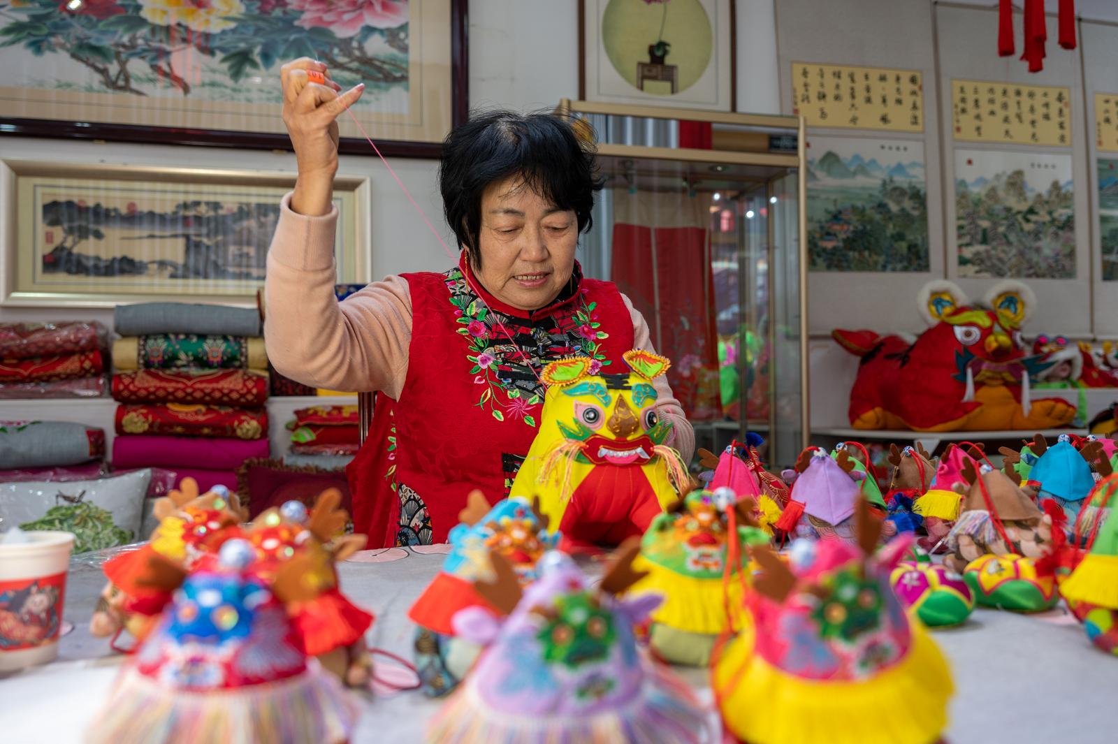 11月17日,山西忻州,市级非遗代县布艺传承人汪翀娥正在潜心创作。据了解,汪翀娥一家五代人深耕布艺技艺,坚守并传承这门非物质文化遗产,以匠心让传统布艺在新时代绽放光彩。