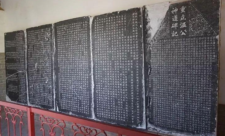 在司马温公祠展馆中,陈列着北宋政治家、史学家、文学家司马光的生平功绩与著作。道路两侧,司马光一条条治学、治家、为政格言,在彩旗上迎风招展。司马氏一族的陵园内,石人石马无言,苍松翠柏静穆,将司马光的功绩彪炳千秋。与祠堂、陵园并称的,是此次采风的重要地标,即一通高达8米多的杏花碑。讲解员介绍,围绕这座巨型碑刻,百余年间曾经上演“立碑-砸碑-寻碑-重立碑”曲折故事。这通由宋代大文豪苏轼奉敕撰文并书丹的2700多字的《司马温公神道碑》,为世人留下了一段司马光与苏轼亦师亦友共进退的佳话。