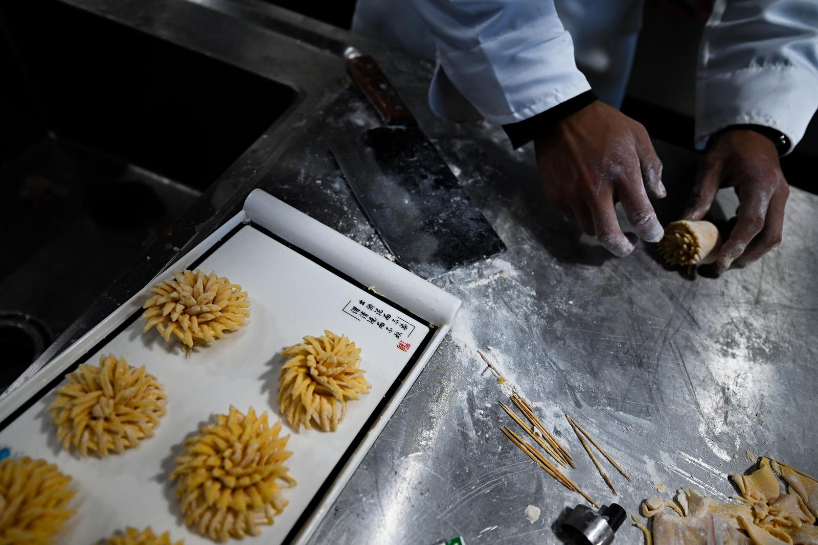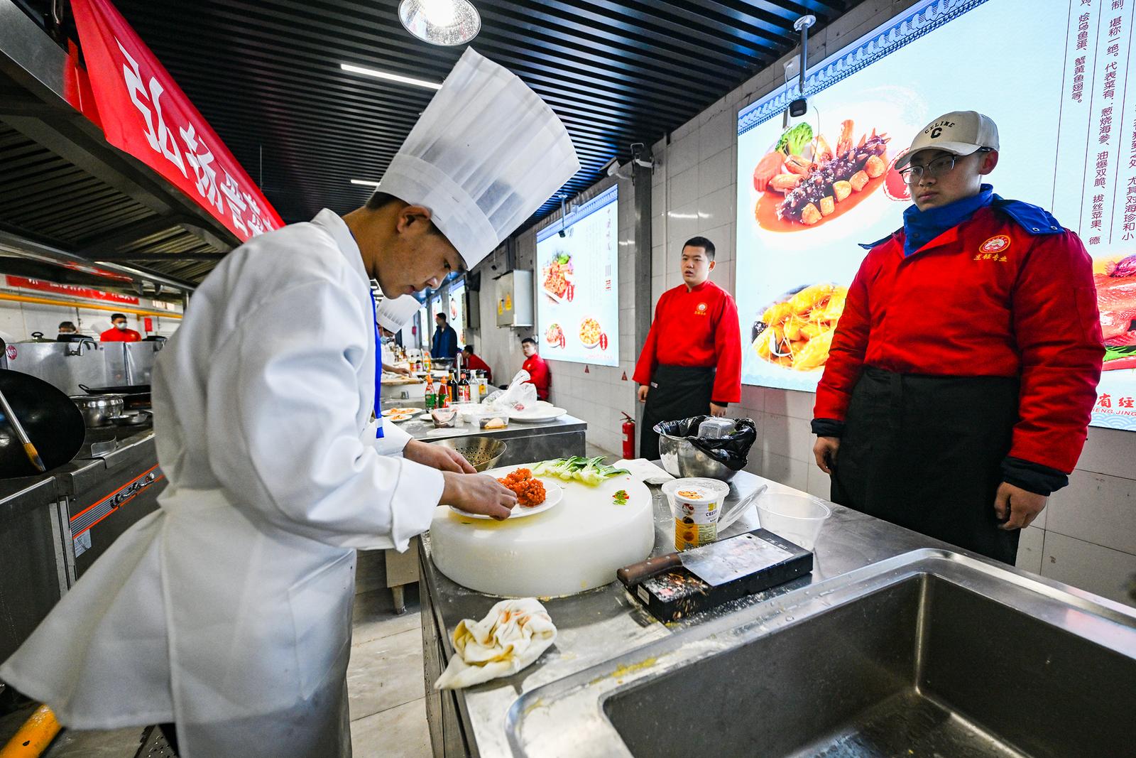 11月18日,参加烹饪技能大赛的学生正在精心制作美味佳肴。