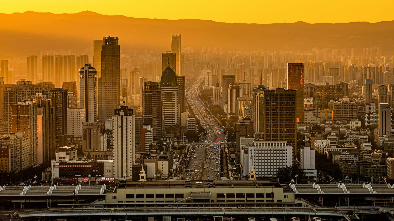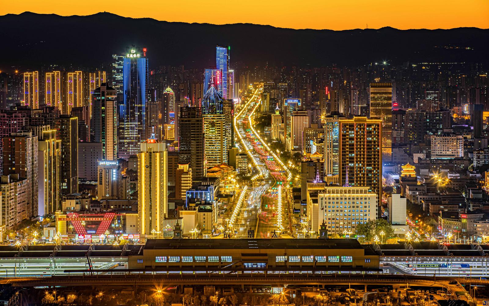 11月18日,落日余晖染红天际,城市仿佛被加了滤镜,街灯次第亮起,迎泽大街在车流灯光的映衬下,宛如一条流动的巨龙。