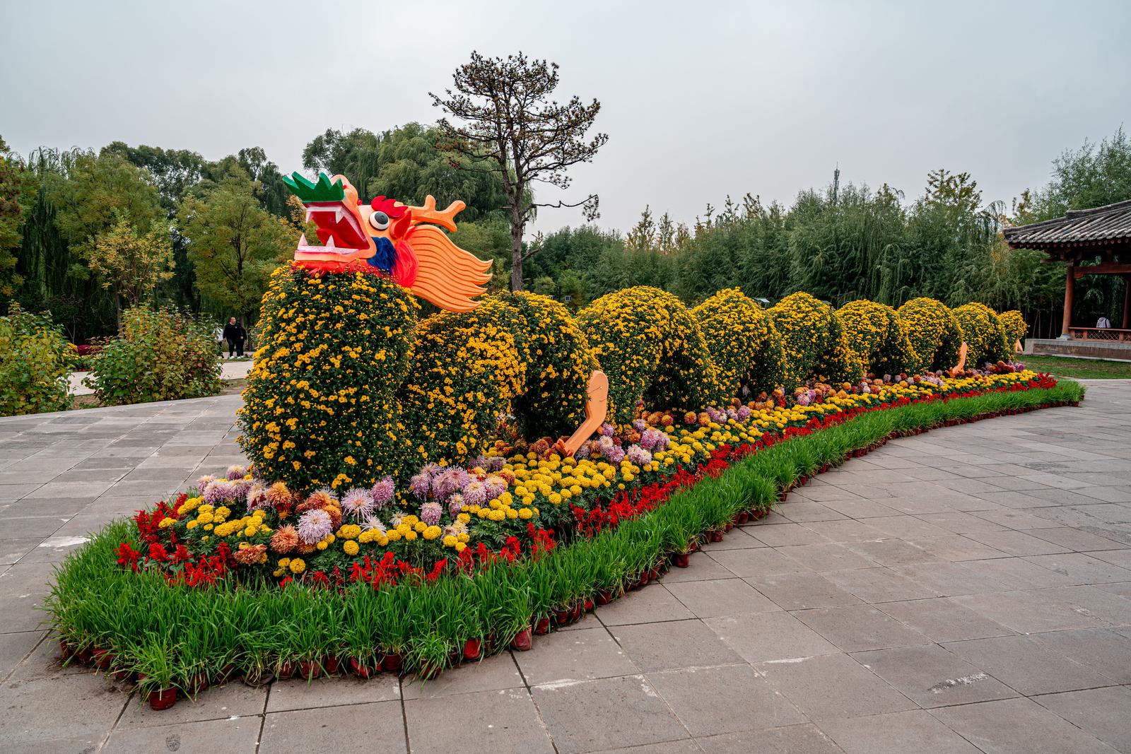 作为今年菊花展的主会场,太原双塔公园在主道路和中心广场布置了11组立体景观花坛,展出精品菊、悬崖菊、花园小菊等各类花卉50余万盆(株),游客在精美的仿古建筑群中移步换景,悠然惬意。花展期间,公园举办戏曲展演、汉服巡游等系列文化活动,日均接待游客6万人次。