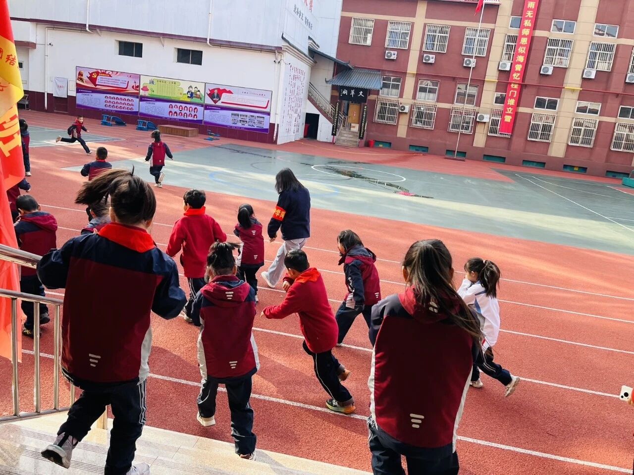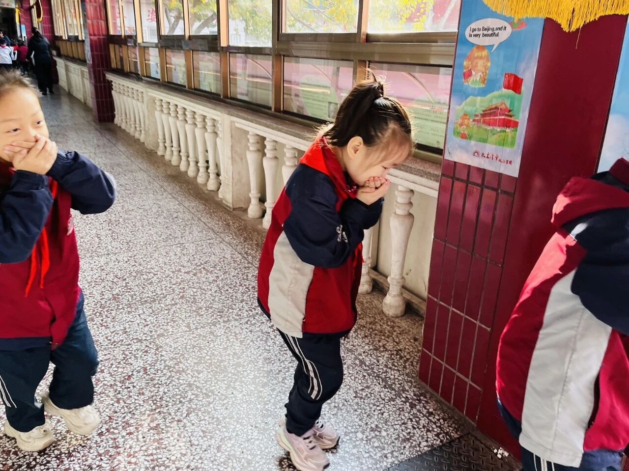 集结完毕后,体育老师柴老师结合小学阶段学生的认知特点,用通俗易懂的语言详细讲解了消防演练核心要点。他强调:“撤离时要牢记‘弯腰、捂鼻、靠右行’,避免烟雾吸入;遇到拥挤不慌张,听从指挥有序通过,切忌追逐打闹;到达安全区域后,迅速找到班级队伍集合,不擅自离开。”同时,体育老师现场示范了正确的逃生动作,让同学们直观掌握应急避险技巧。