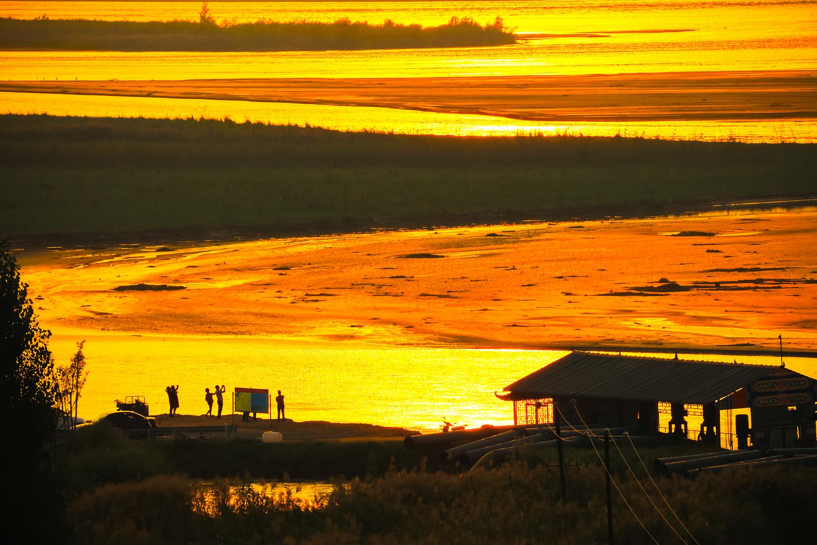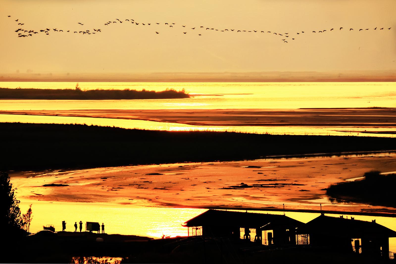 万荣西滩:金辉映黄河 飞鸟添灵动