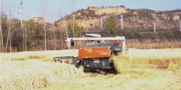 走进西洛镇段廷村的田间,连片稻田翻涌着金色的波浪,收割机在田间往复穿梭,收割、脱粒等工序一气呵成,奏响了丰收的乐章。