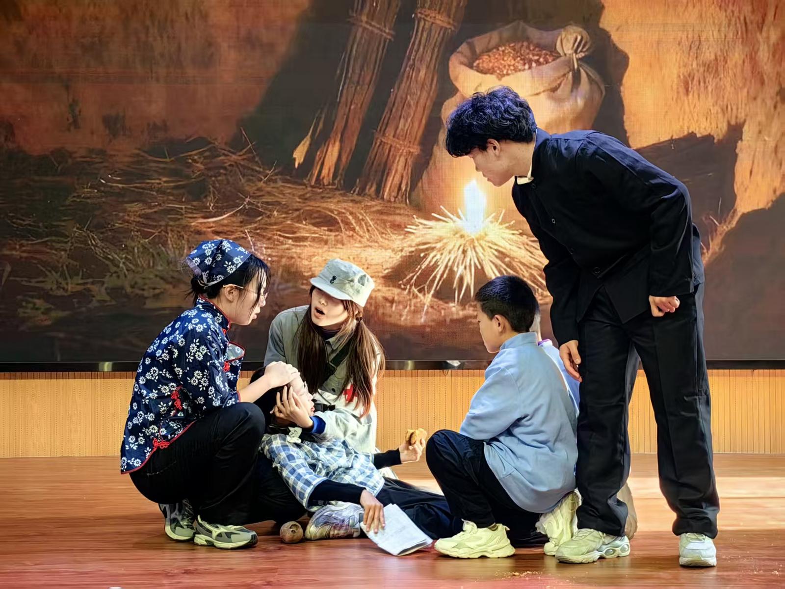 “我们不仅是演员,更是红色精神的讲述者。”学前教育专业学生李雅琪这样说道。为准确塑造角色,演员们反复查阅资料、苦练方言台词,力求在表演中真切地传递出历史英雄的坚毅与智慧。中小学生演员也在演出中表现出极高的热情,他们一遍遍地排练动作、琢磨台词,从最初的生涩到最后的投入,整个过程本身就是一堂生动的思政实践课。