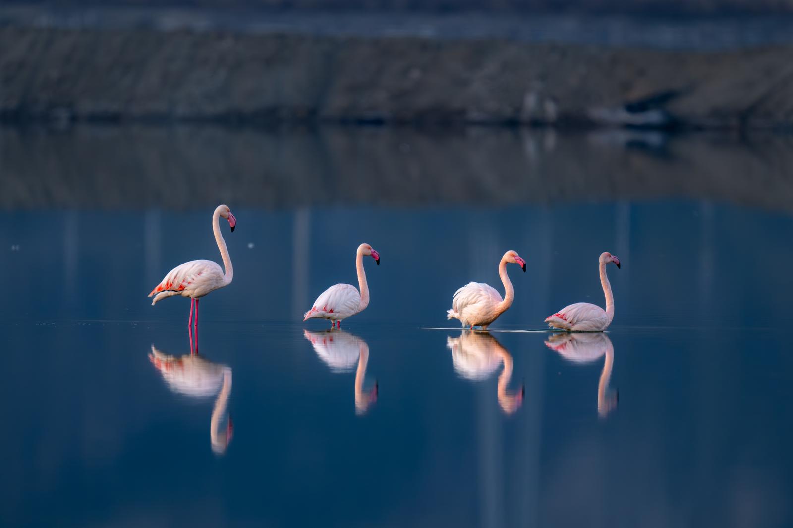 近日,4只野生火烈鸟再度飞抵山西运城盐湖,将在此度过整个冬季。它们或觅食、或嬉戏、或游弋,为冬季的盐湖湿地增添一份和谐与灵动,吸引众多游人和摄影爱好者前来观赏、拍摄。