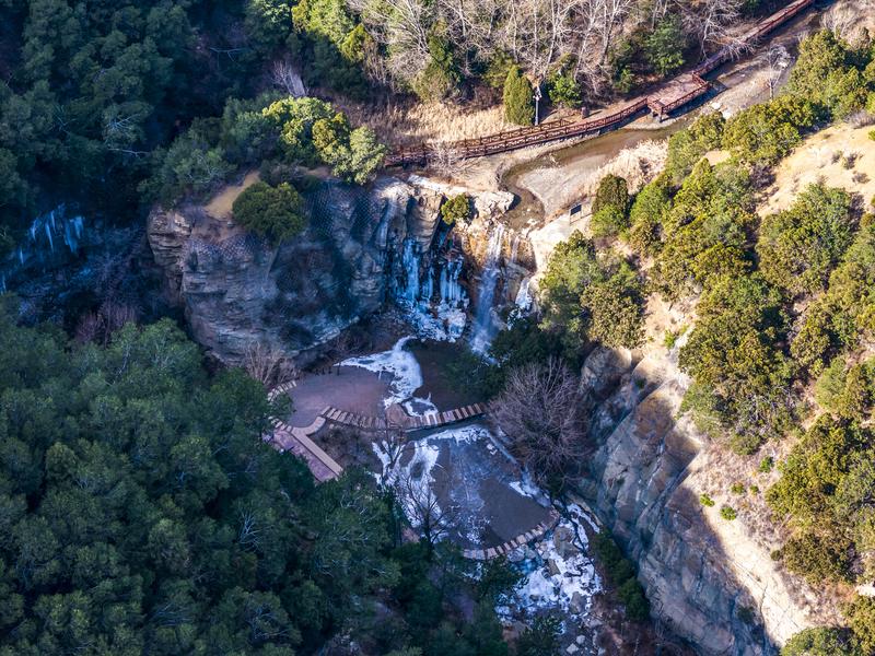 近日,太原柳跖峪景区现冰挂景观。远远望去,冰挂如水晶帘幕垂落山间,冰瀑、冰挂悬于岩壁,与蜿蜒的木栈道交织相融形成冬日奇观,成为冬季徒步赏景的绝佳去处。