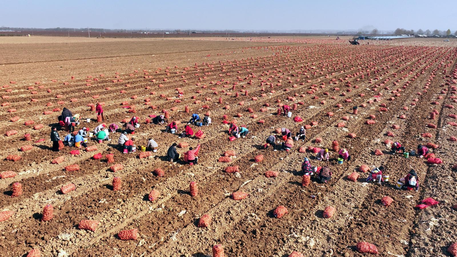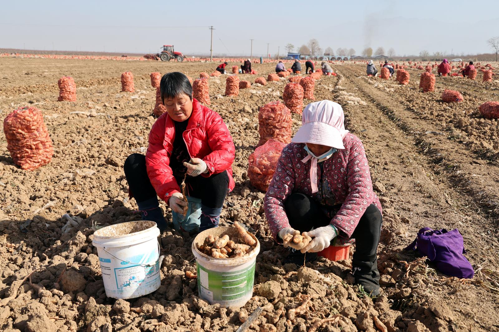 11月25日,山西省运城市永济市黄河滩涂的千余亩地黄进入集中采收期。农机在田间来回穿梭,将深埋土壤中的地黄翻出,饱满的根茎散落田间,村民们忙着挑拣、装袋,一派热火朝天的丰收景象。
