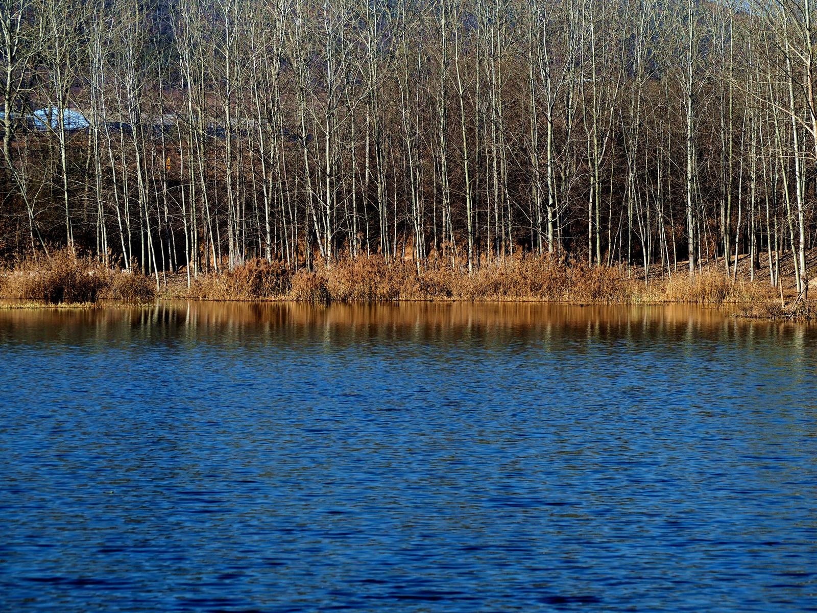 近日,山西省晋城市高平市米山湿地公园,湛蓝的湖水与金黄的芦苇、树木及远山交相辉映,构成了一幅静谧的冬日生态画卷。