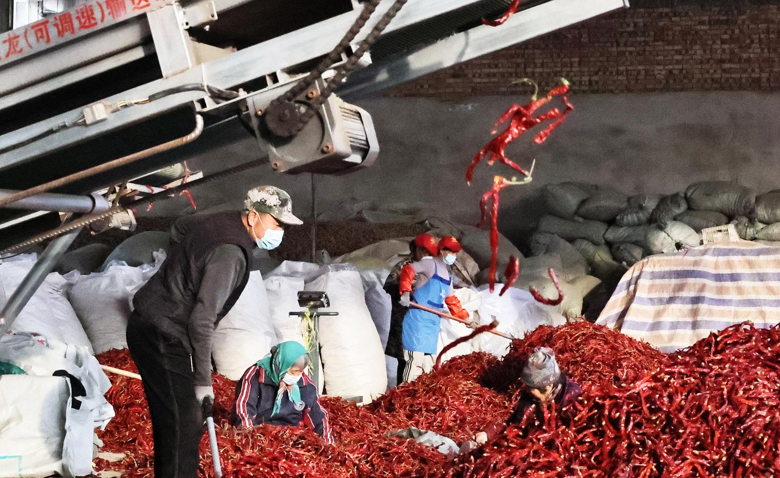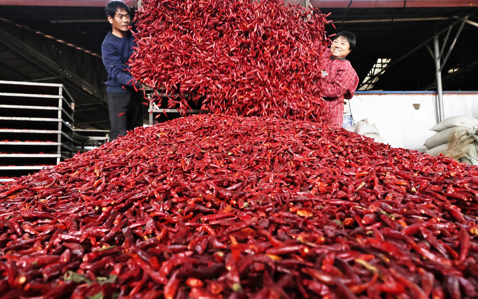辣椒专业合作社、农家大院及连片辣椒田间,处处可见椒农忙碌的身影。他们正忙着采摘分拣、加工装袋、烘干及装车外销,一派丰收忙碌的景象。