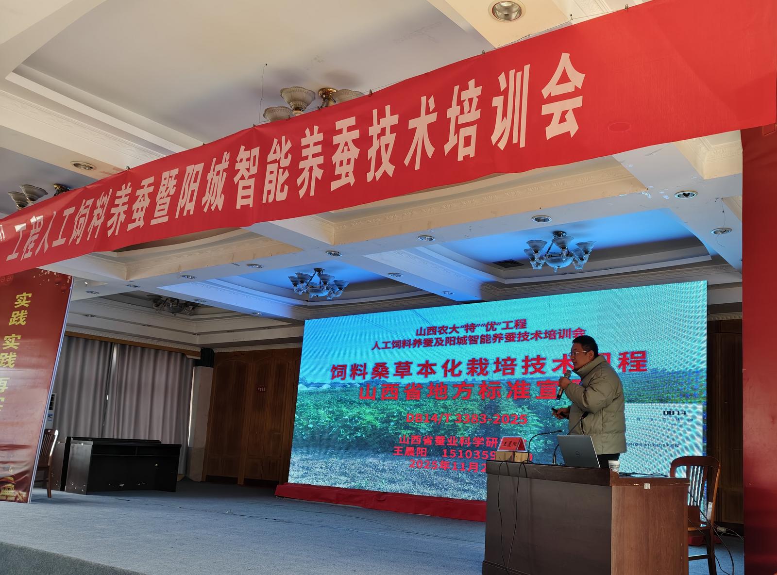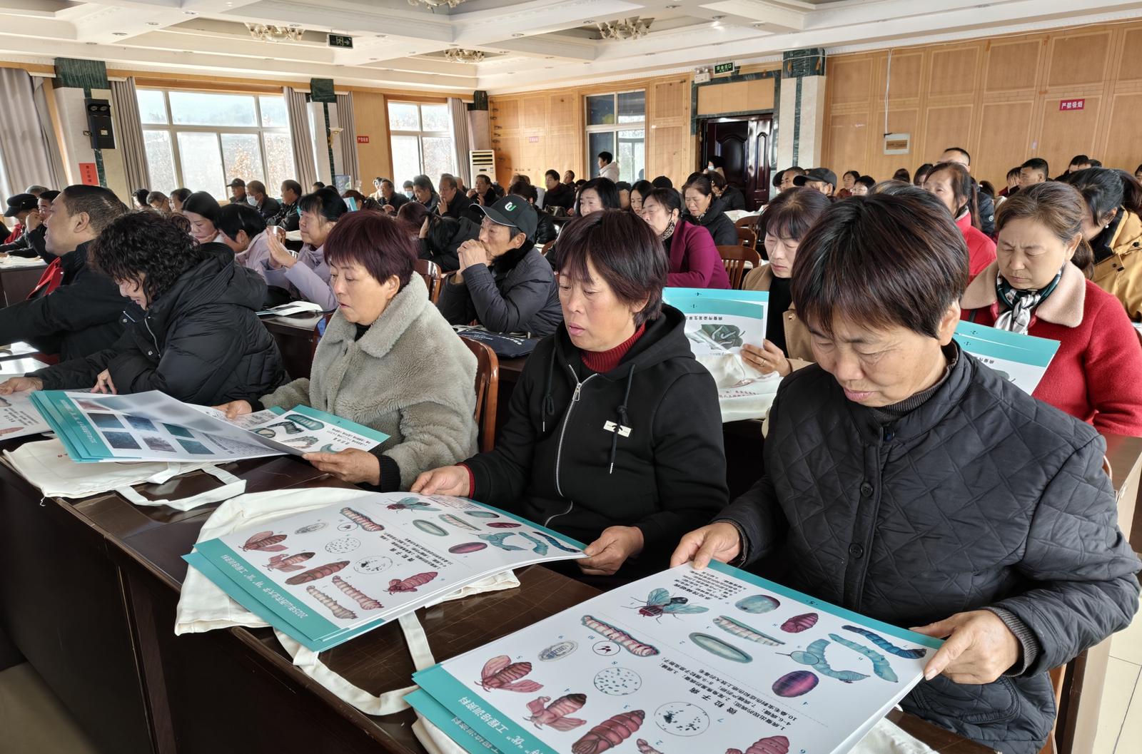 11月23日,山西省“特”“优”农业高质量发展科技支撑工程——人工饲料养蚕暨智能养蚕技术培训会在阳城县举办。此次培训由山西省蚕业科学研究院牵头组织,阳城县蚕桑中心技术人员、相关企业代表及蚕桑养殖大户等160余人参会,现场发放蚕桑病虫害防治挂图160余份。