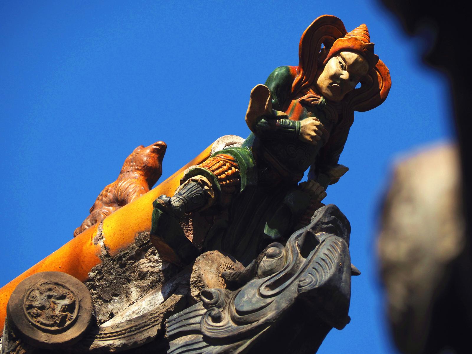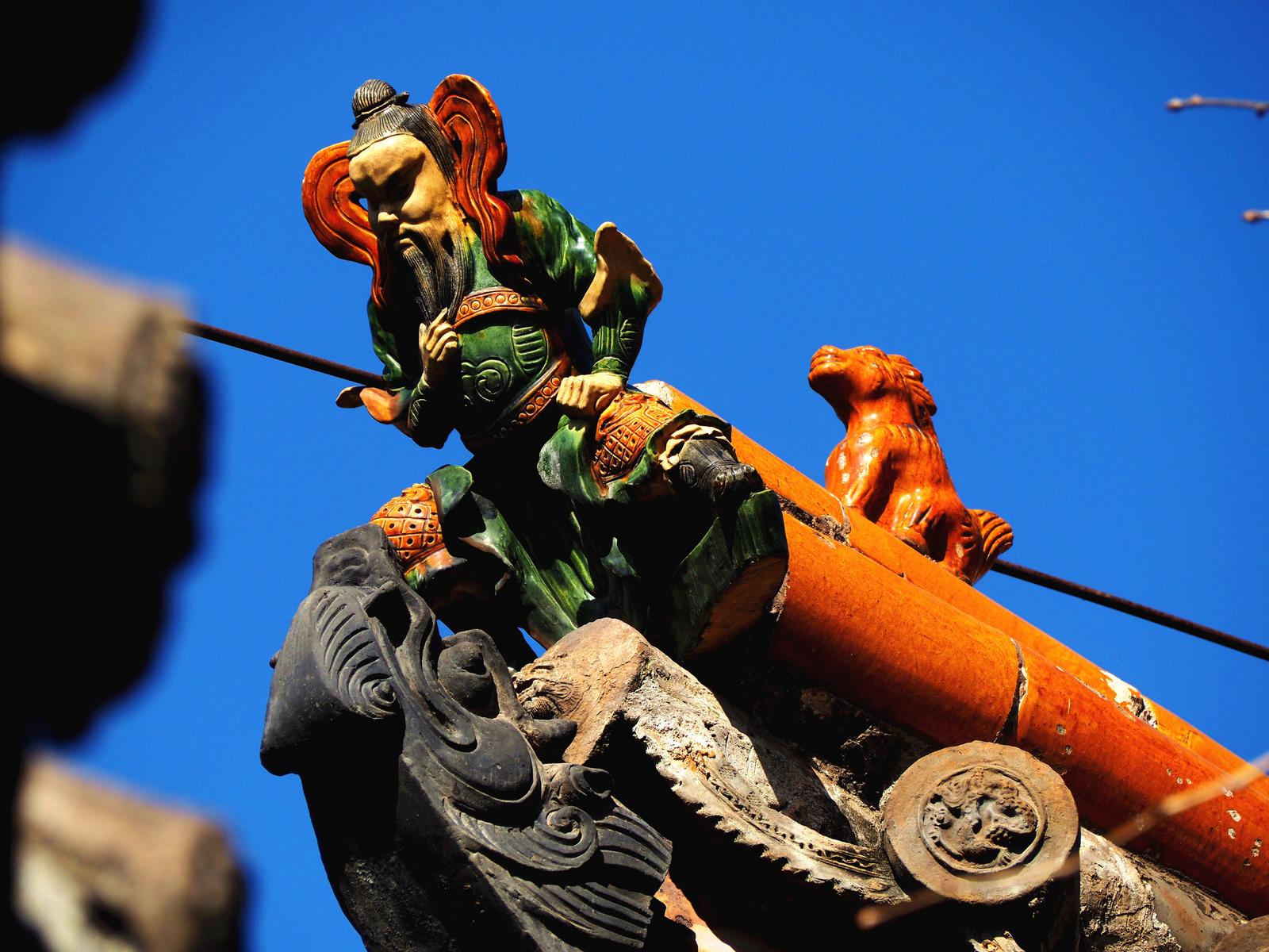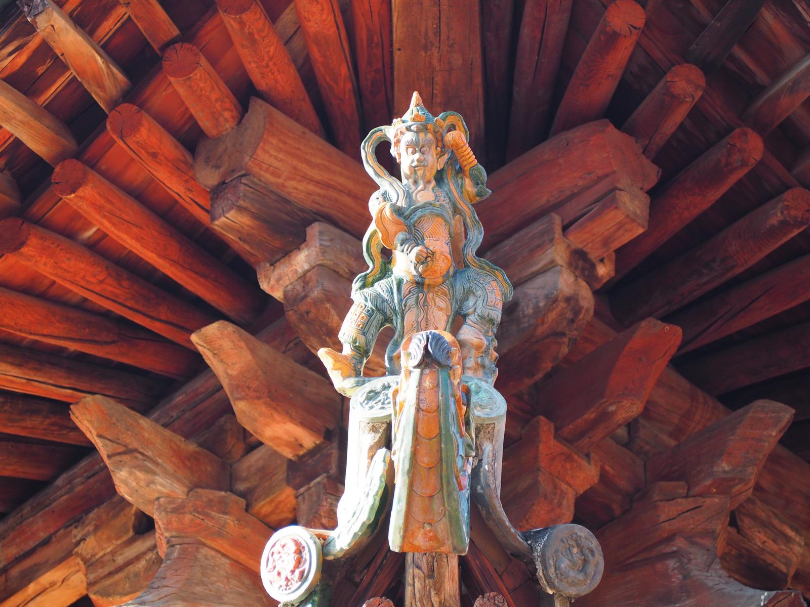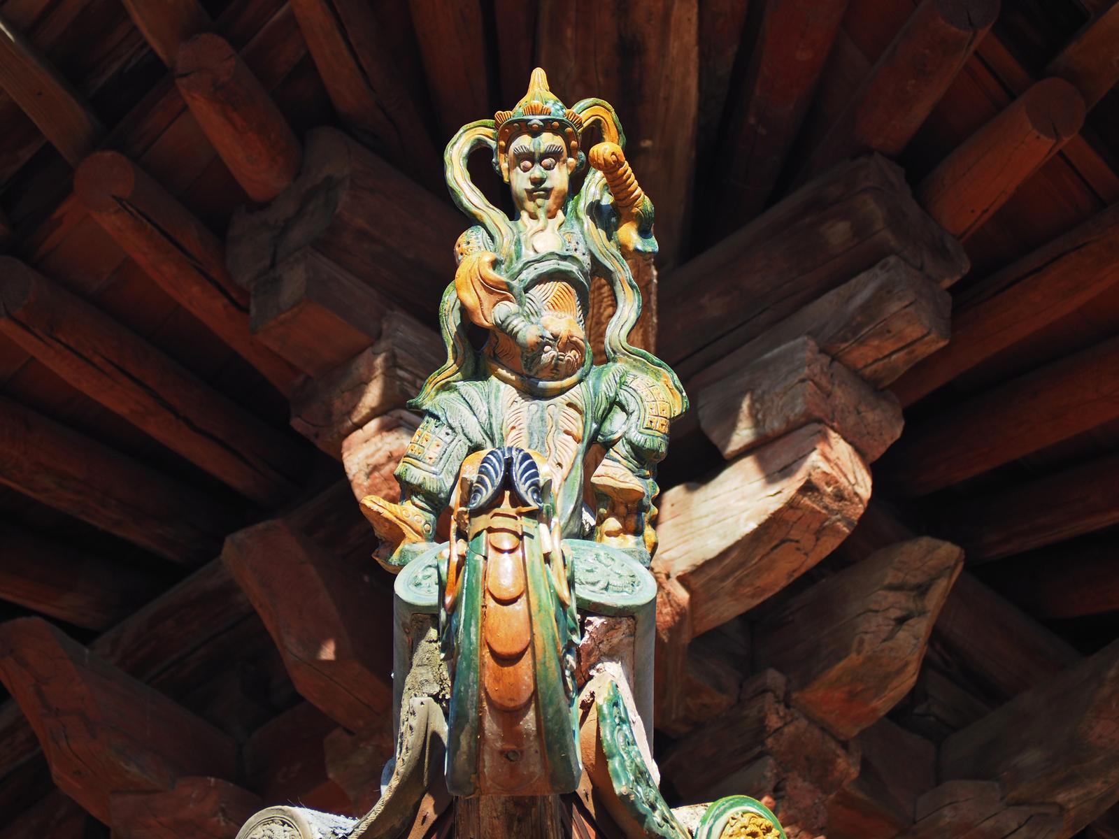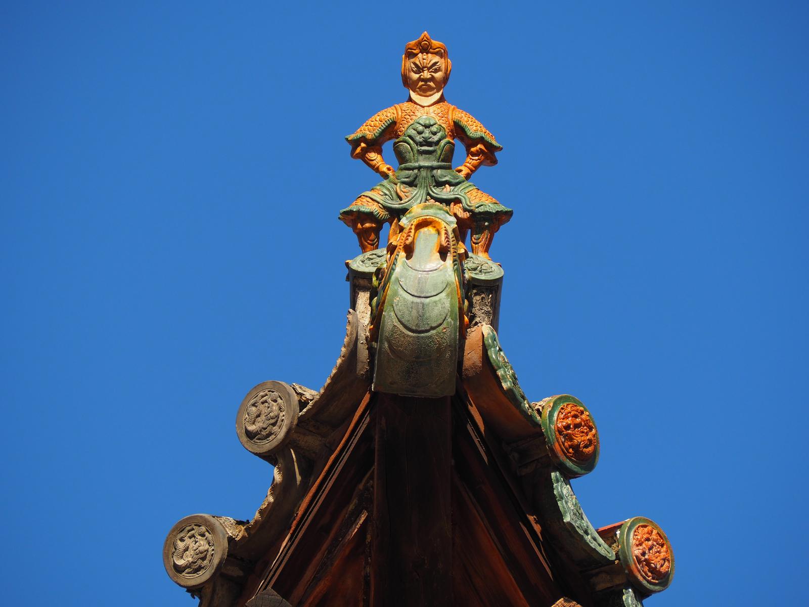 在山西观赏古建筑,总需抬头仰望,那些站立塔顶、骑踞屋脊、蹲守房檐的“角神”们极具特色,让游客赞叹不已。