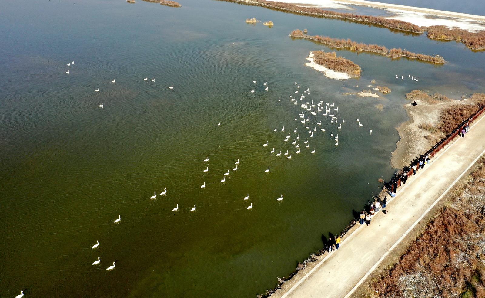 近年来,运城盐湖持续推进生态保护和修复工作,生态环境得到显著改善,吸引白天鹅、白鹭等珍稀鸟类前来栖息“安家”,为这片古老的盐湖注入了生机与活力。