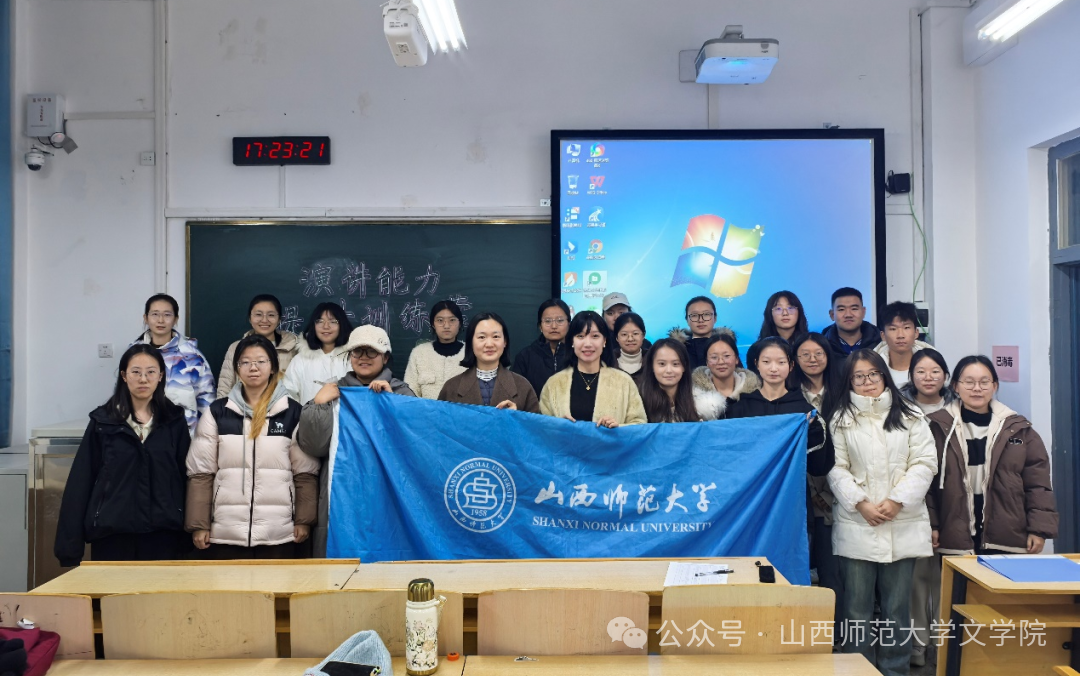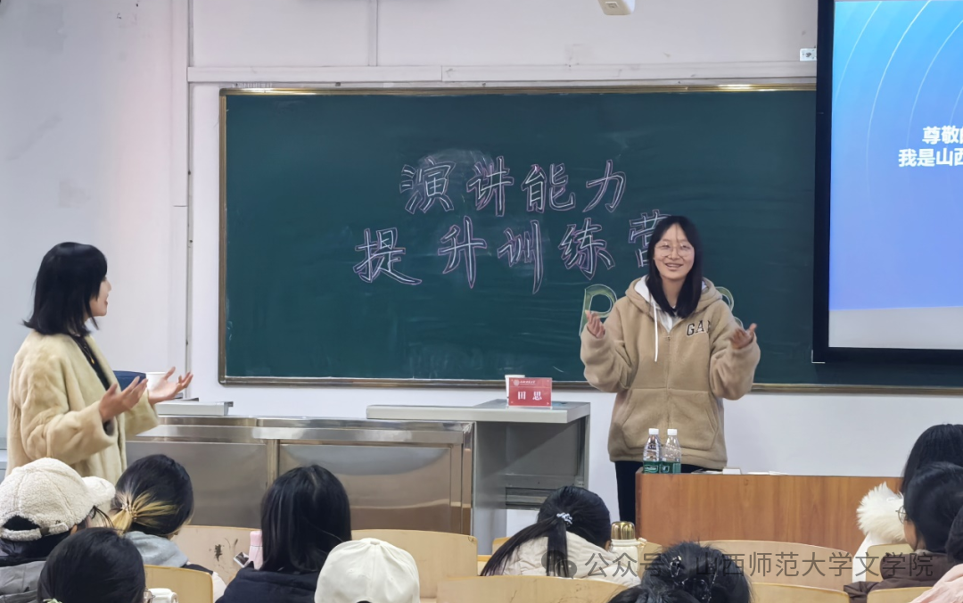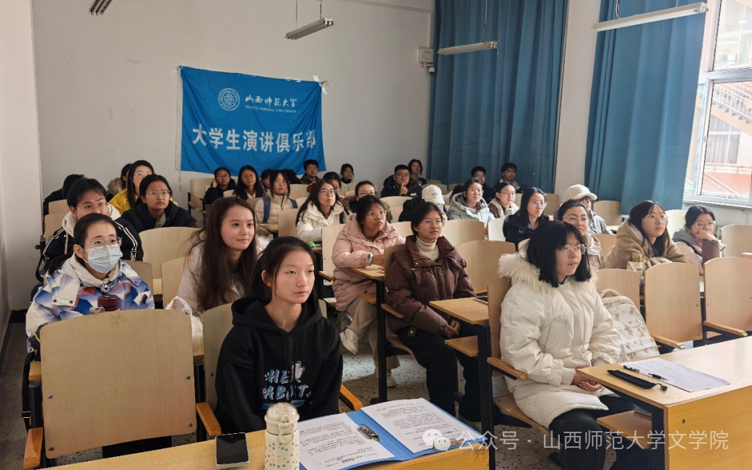 11月29日下午,山西师范大学文学院大学生演讲俱乐部在南区3202教室举办第三期“演讲能力提升”训练营。本期活动以“从会讲到讲好:语言+肢体+互动,打造感染力”为主题,特邀山西广播电视台交通广播节目中心主持人、记者田思担任主讲嘉宾,学院部分同学参加。