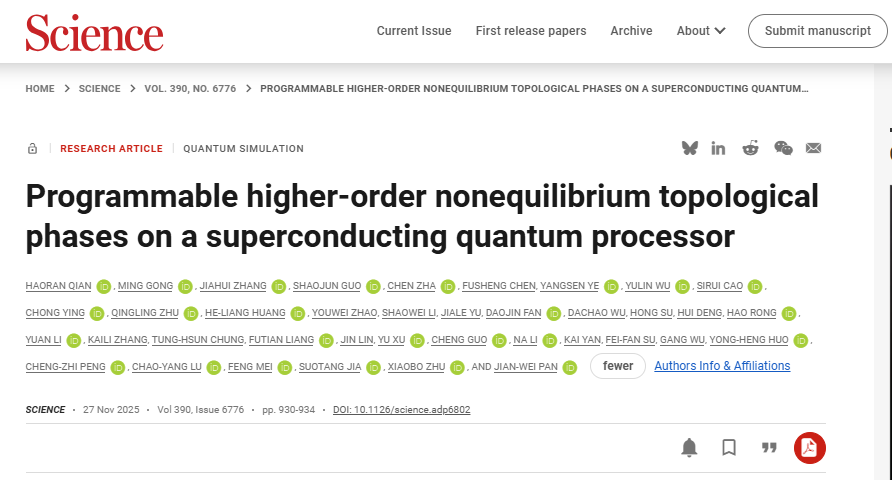 11月28日,国际顶级学术期刊《科学》(Science)发表了一项突破性研究成果:在国际上首次实现并探测了拓扑保护的超导量子比特新奇物态。这项研究的背后,是山西大学光量子技术与器件全国重点实验室与中国科学技术大学超导量子计算团队的紧密合作。
