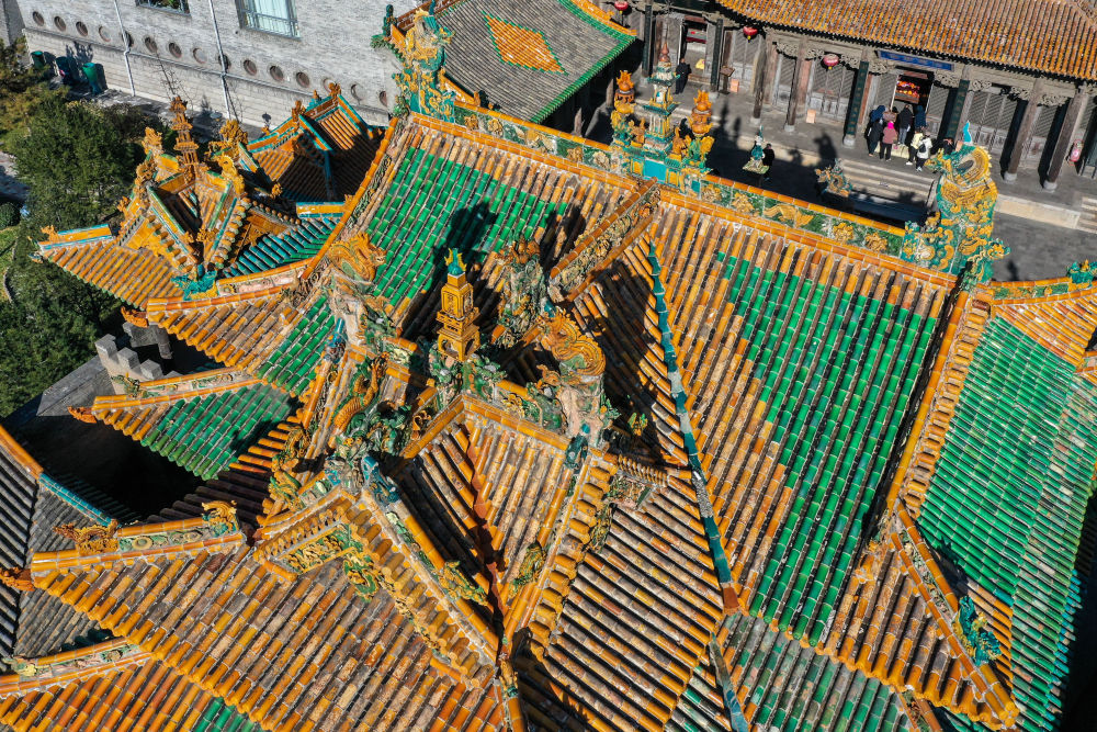 这是11月18日在山西省介休市后土庙拍摄的琉璃宝顶。