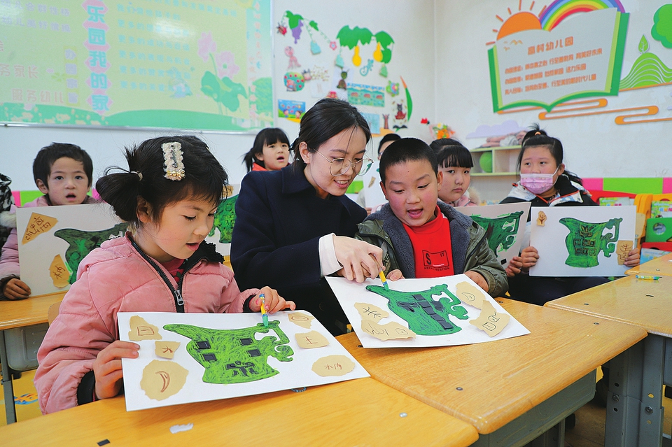 11月25日,阳曲县高村小学的孩子们在太原博物馆工作人员的陪伴下做手工。当日,太原博物馆“流动博物馆进乡村”活动在阳曲县高村乡开展。工作人员通过展览讲解与互动教学的方式,将历史文化送到村民和学生的身边,进一步推动了城乡文化资源共享。