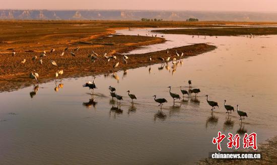 初冬时节,黄河万荣段,灰鹤在滩涂湿地间翩跹起舞,构成一幅灵动的黄河冬日生态画卷。