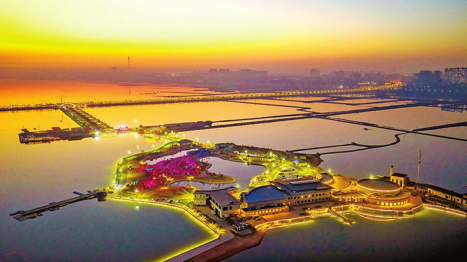 11月29日,运城市盐湖景区灯火璀璨。近年来,该市持续加强盐湖生态建设,盐湖风景越来越美,水质越来越好,成为游客休闲游玩好去处。(闫鑫摄)